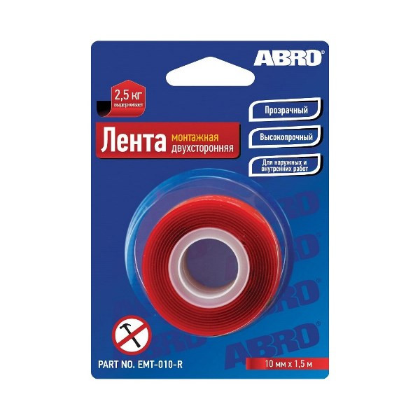 EMT010R ABRO Скотч двухсторонний 10 мм х 1,51 м "ABRO" (монтажный)