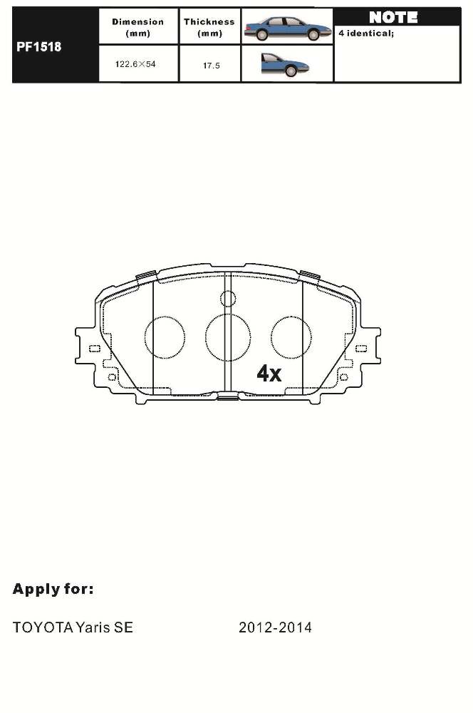 | Наименование | Колодки TOYOTA Vitz/Yaris NCP90 (2005-) передние PF1518 |