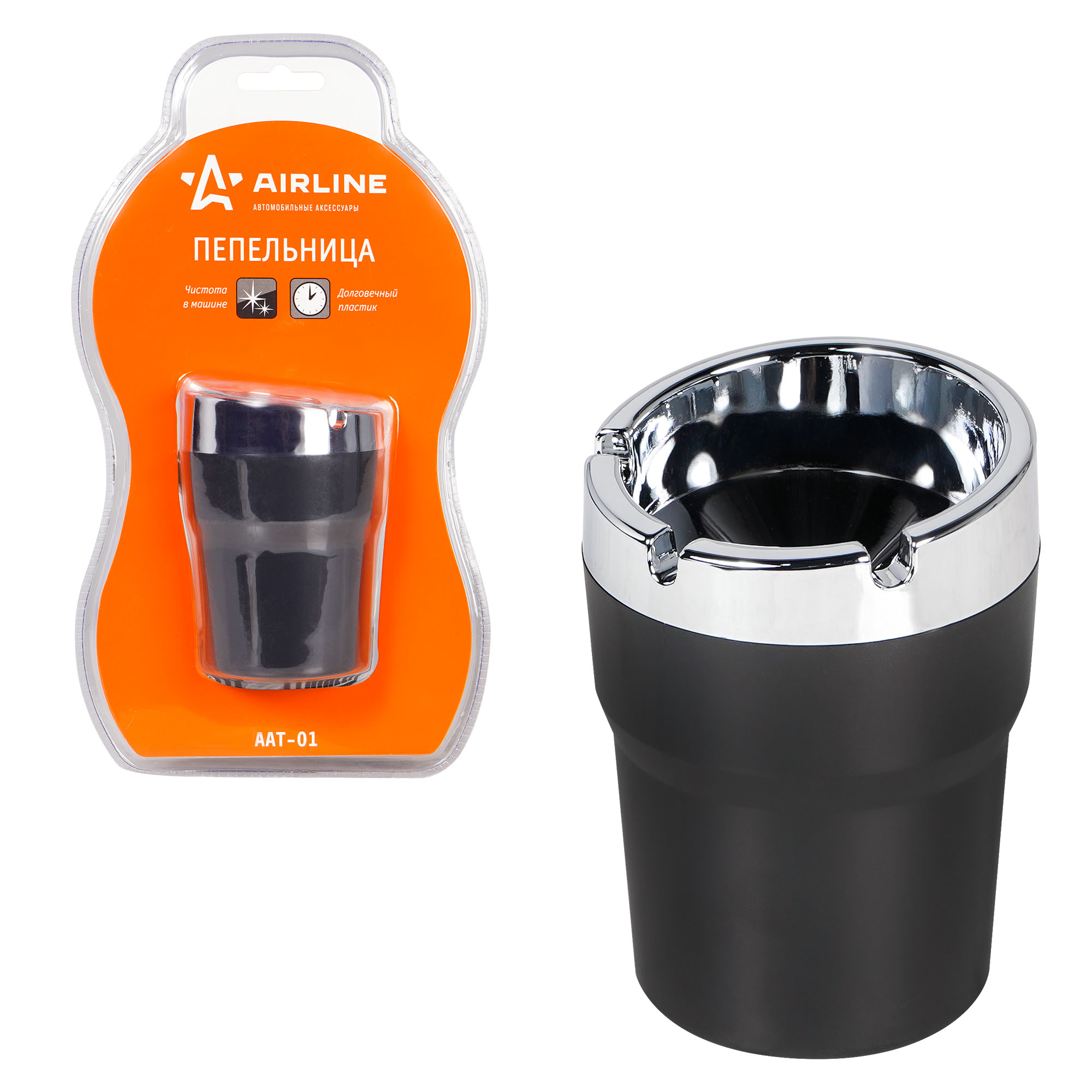 AAT-01 AIRLINE Пепельница автомобильная в штатное место черная/серебро AIRLINE