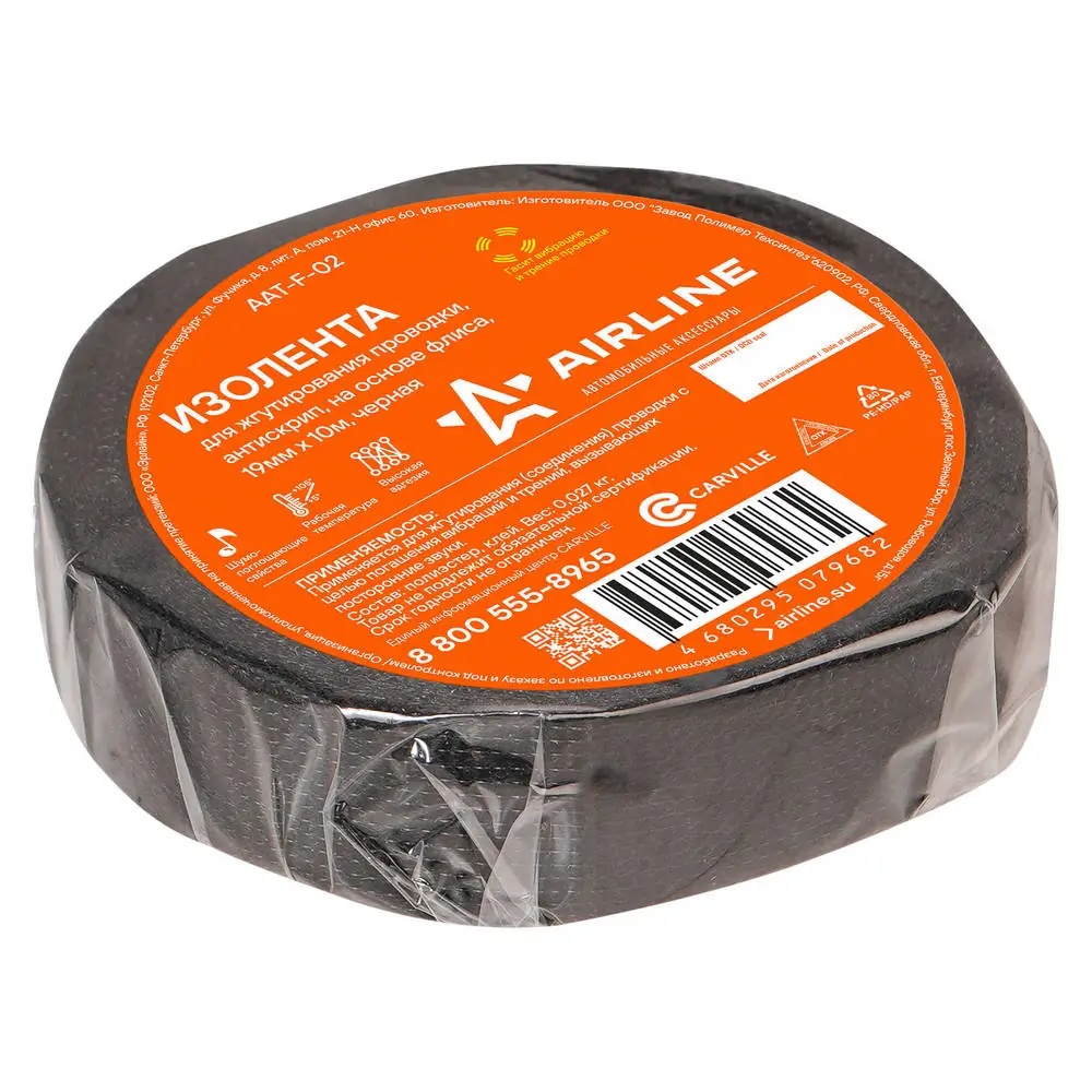 AAT-F-02 AIRLINE Изолента для жгутирования проводки 19 мм*10 м, антискрип, на осн. флиса AAT-F-02