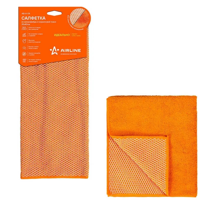 AB-A-04 AIRLINE Салфетка микрофибра универсальная 35х40см оранжевая AIRLINE