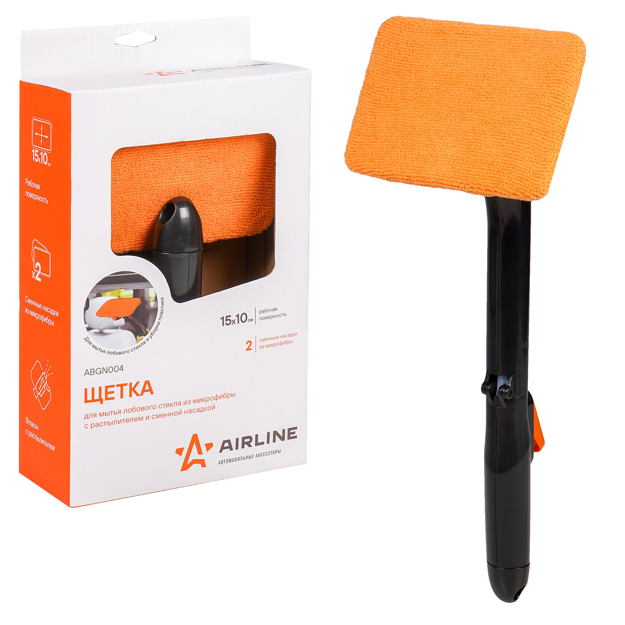 ABGN004 AIRLINE Щетка для мытья лобового стекла из микрофибры с распылителем и сменной насадкой