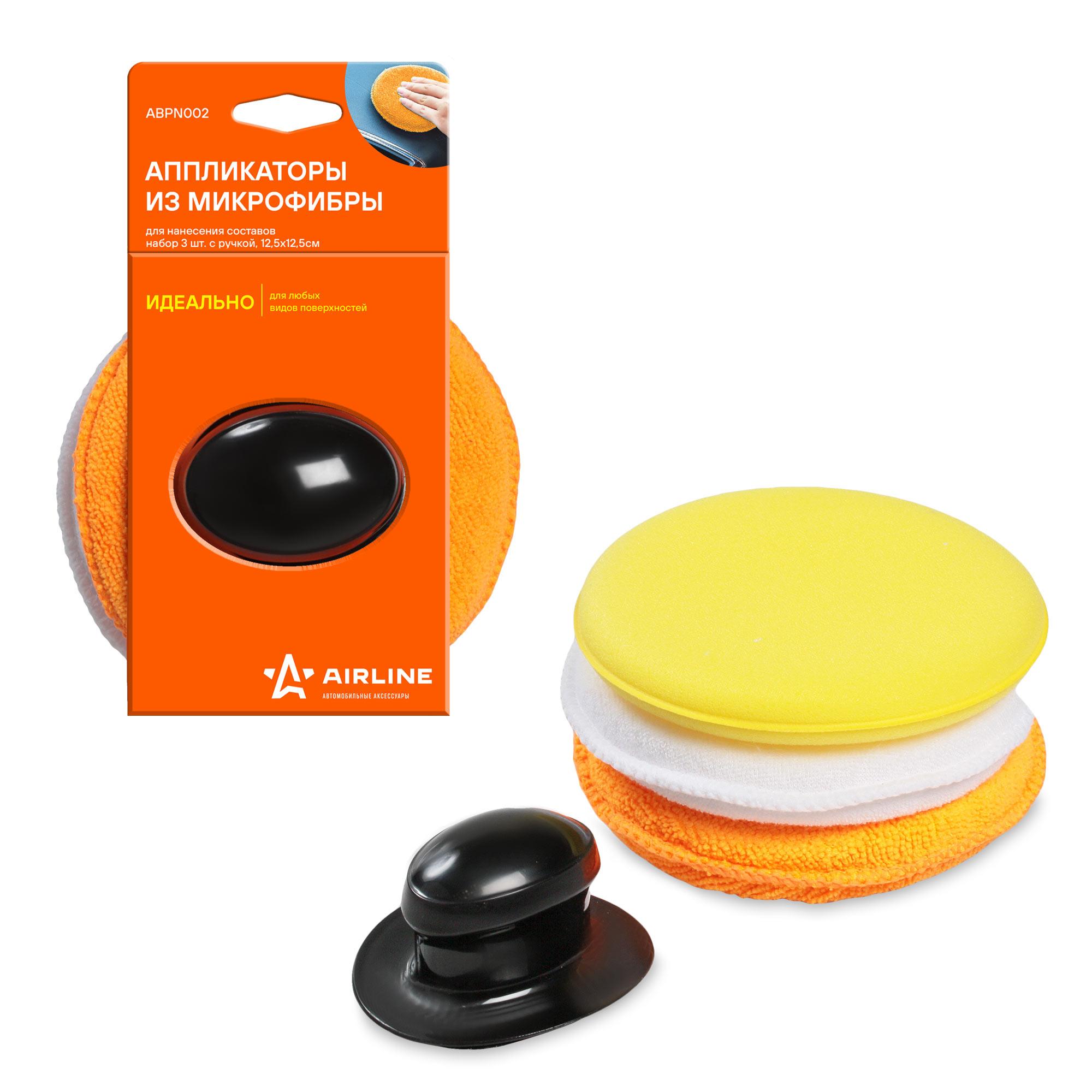 ABPN002 AIRLINE Аппликаторы из микрофибры для нанесения составов набор 3 шт. с ручкой (12,5*12,5