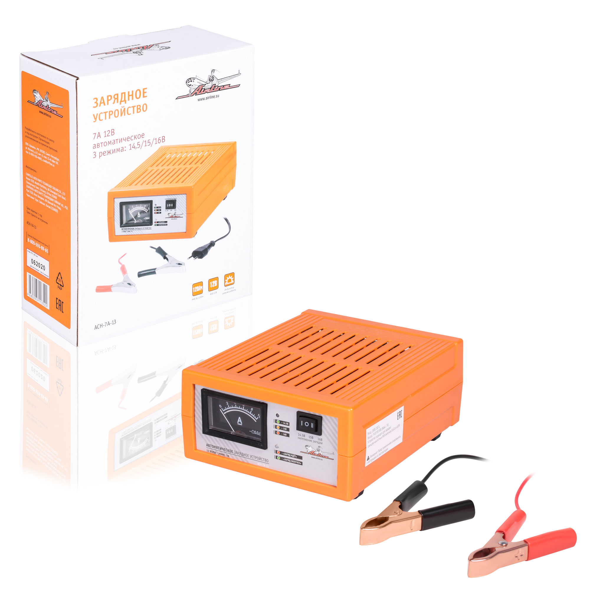 ACH-7A-13 AIRLINE Зарядное устройство 7А 12В, амперметр, автомат, импульсн. (3 режима 14,5/15/16В)