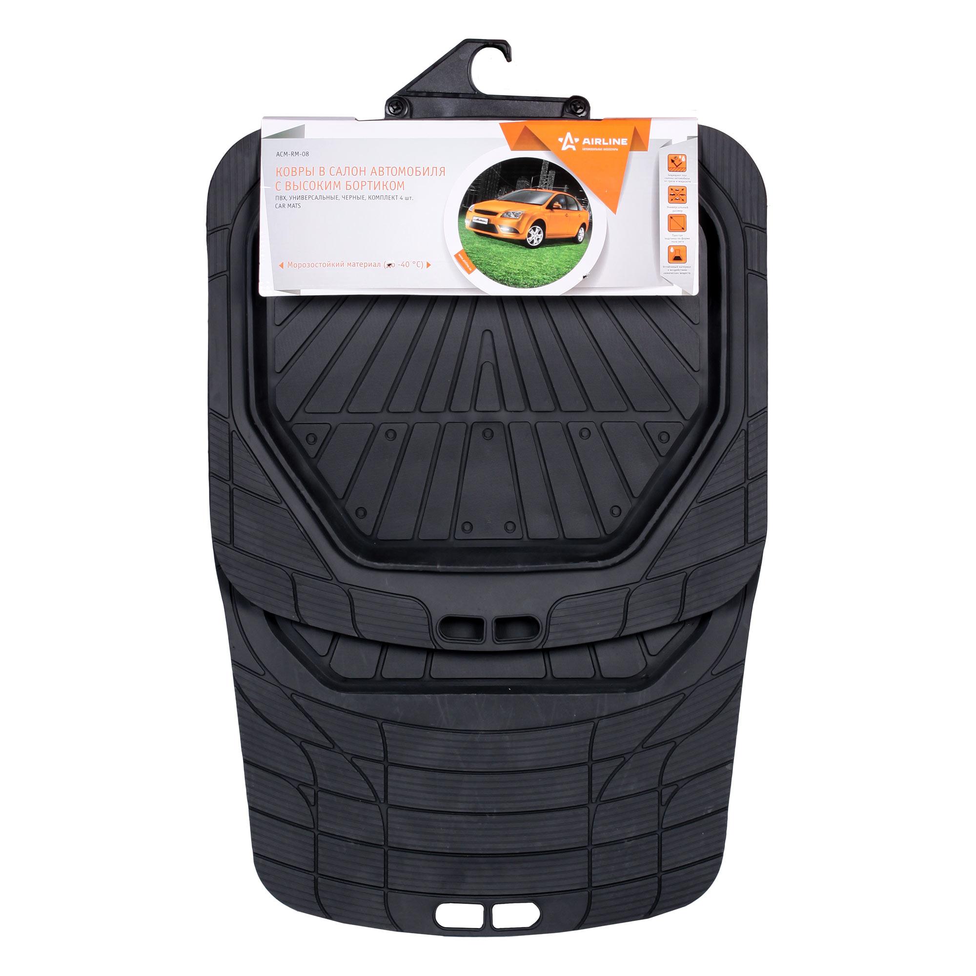 ACM-RM-08 AIRLINE Коврик салона универсальный с бортиком полиуретан черный (4 предмета) AIRLINE