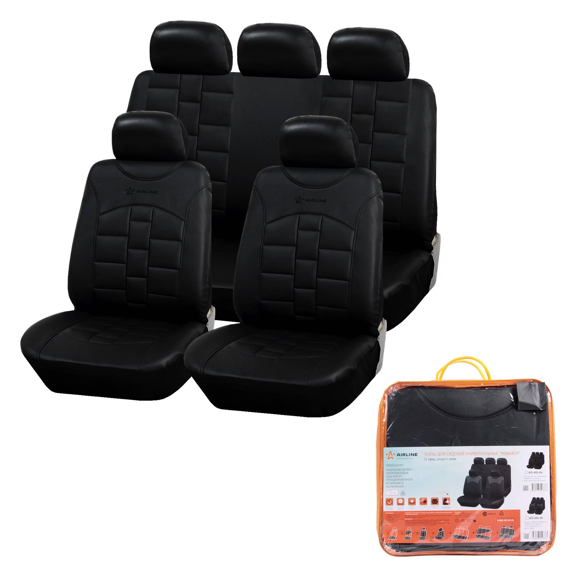 ACS-UEL-04 AIRLINE Авточехлы универсальные экокожа черные (11 предм.) Monarch AIRLINE