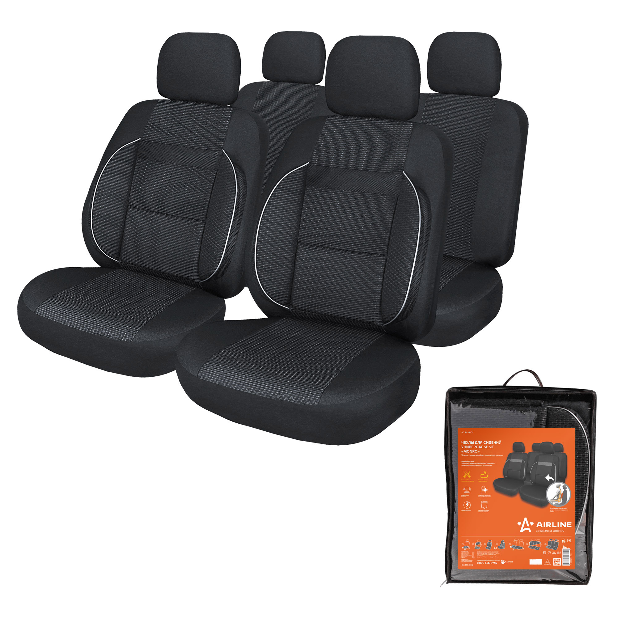 ACS-UJ-01 AIRLINE Чехлы для сидений универсальные MONRO, 11 пред., повыш. комфорт, жаккард, черн.