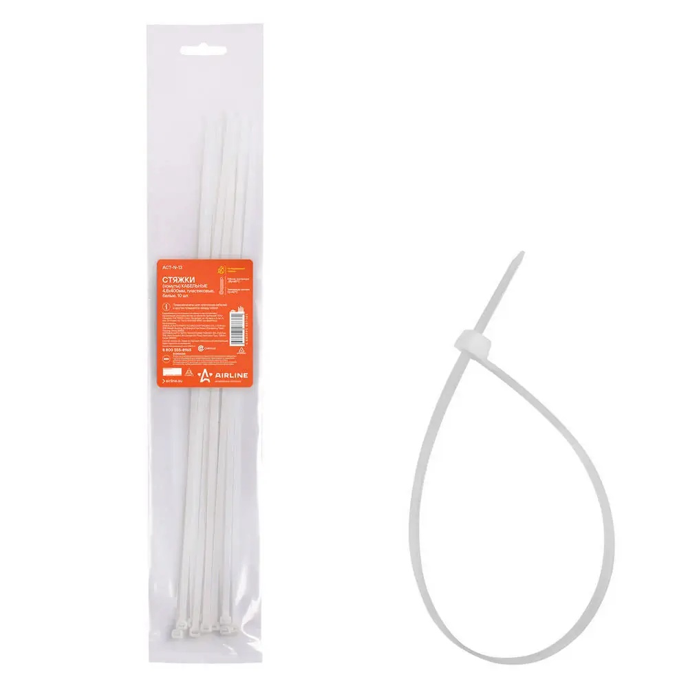 ACT-N-13 AIRLINE Хомут нейлоновый AIRLINE 4.8 х 400 мм белый 10 шт.
