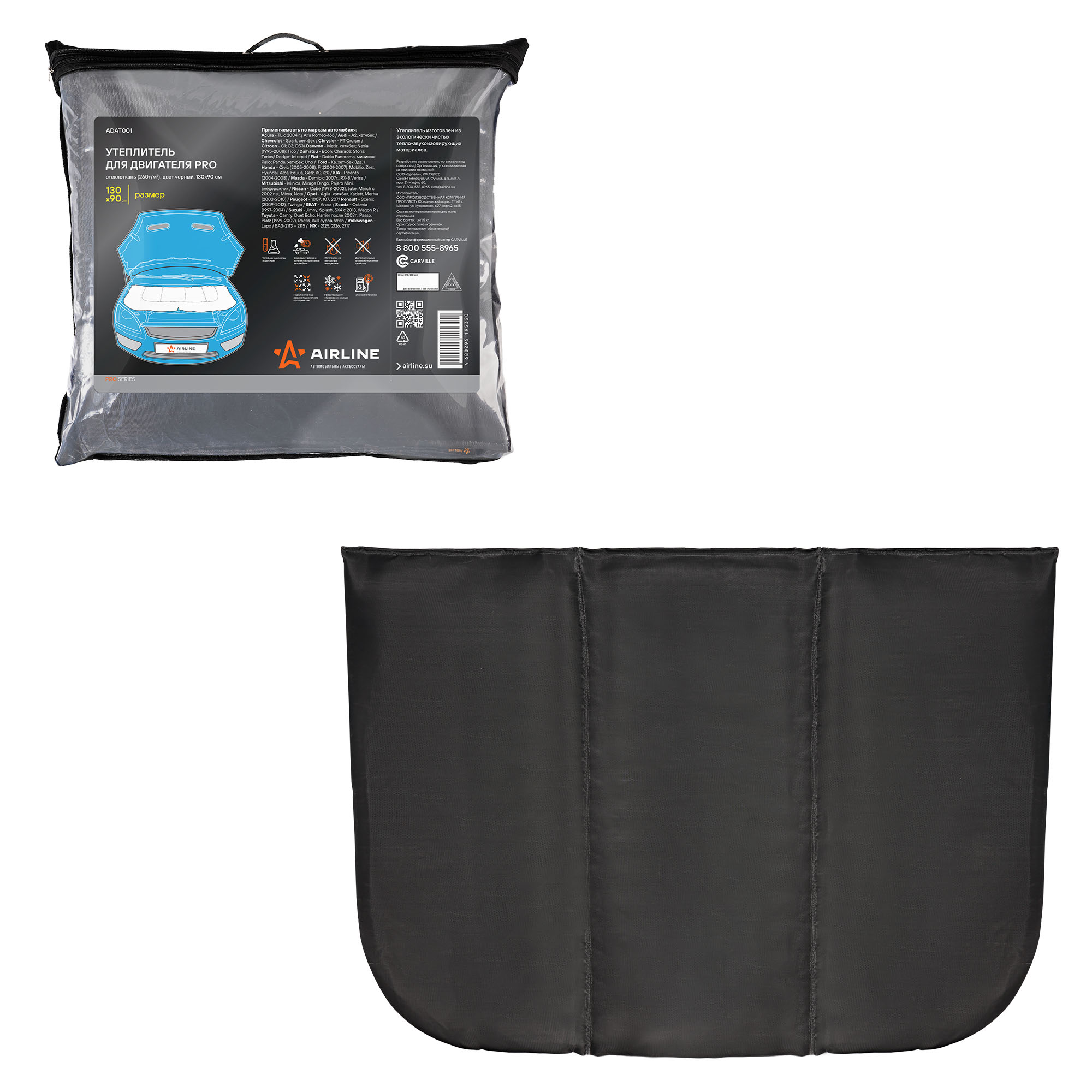 ADAT001 AIRLINE утеплитель для двигателя!PRO, стеклоткань (260г/м2), цвет черный, 130x90\