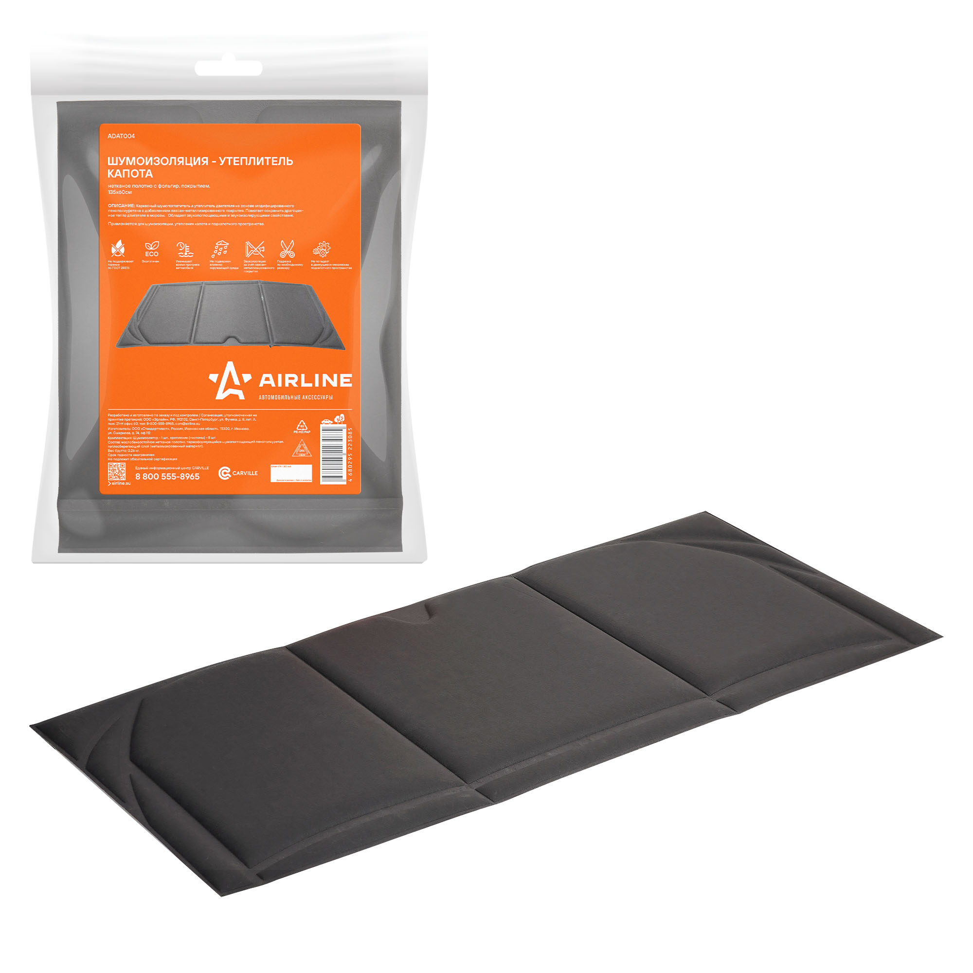 ADAT004 AIRLINE Шумоизоляция-утеплитель капота, нетканое полотно с фольгир. покрытием, 135*60 см