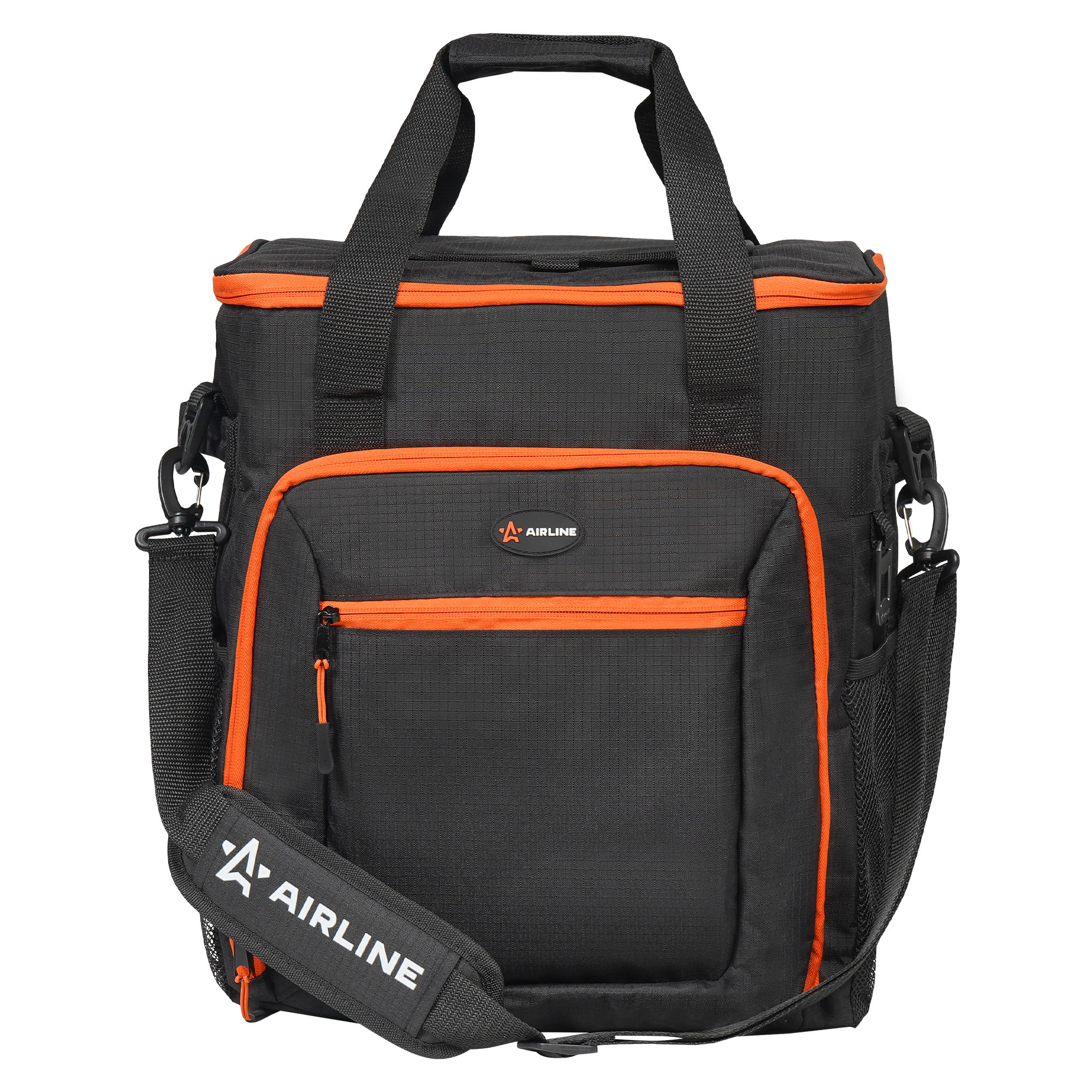 ADCB013 AIRLINE Сумка изотермическая 48л 34х48х10см черно-оранжевая на колесах AIRLINE
