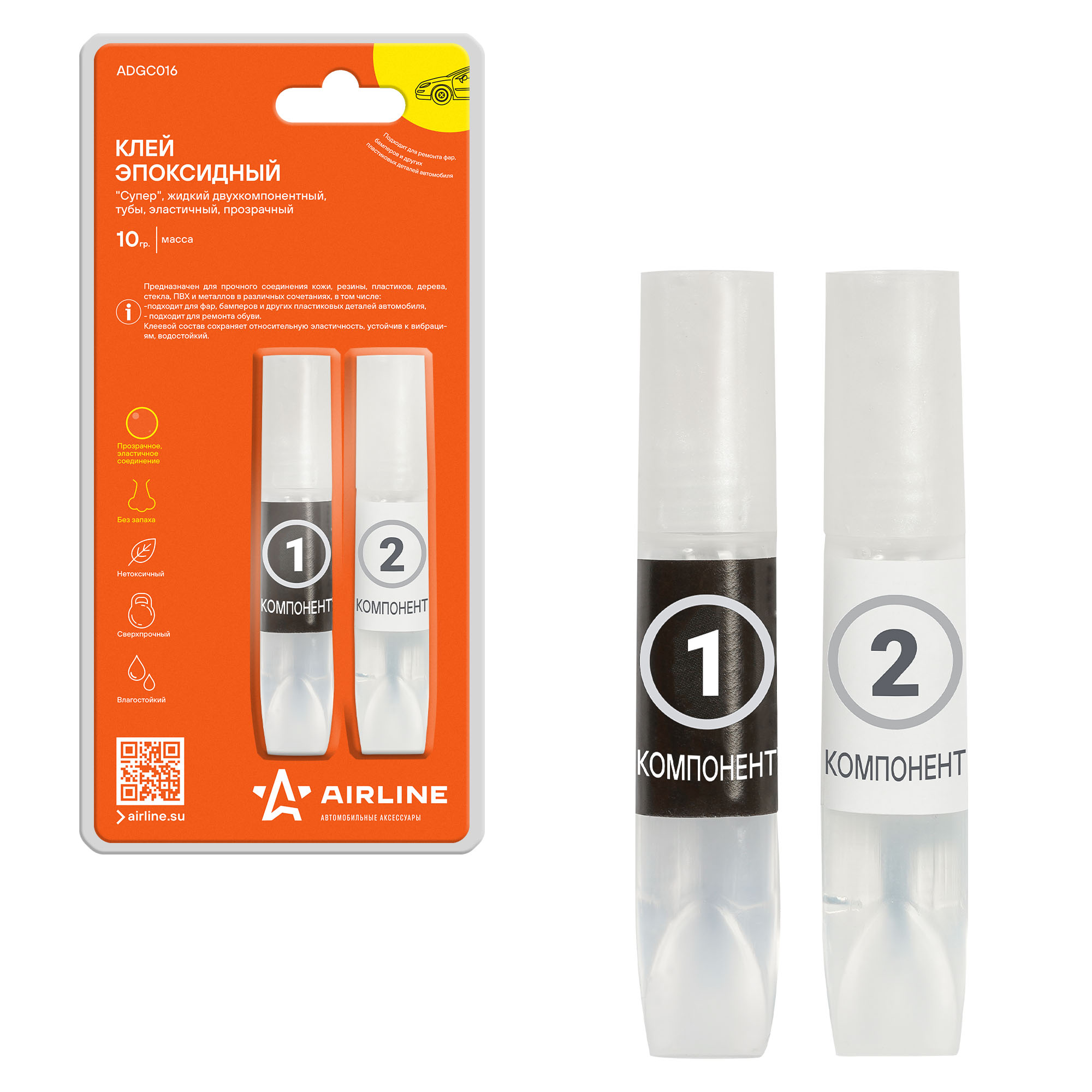 ADGC016 AIRLINE Клей эпоксидный Супер AIRLINE 10 г туба 2-х компонентный, эластичный, прозрачный