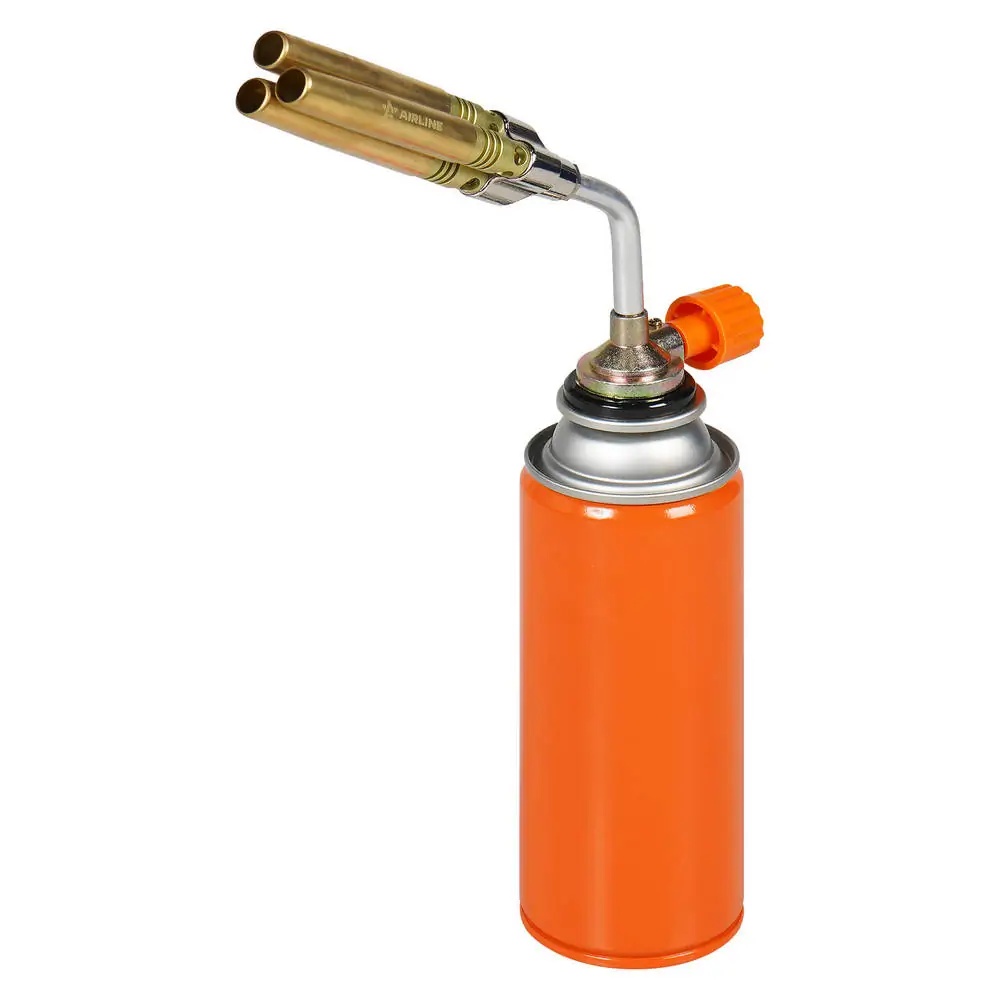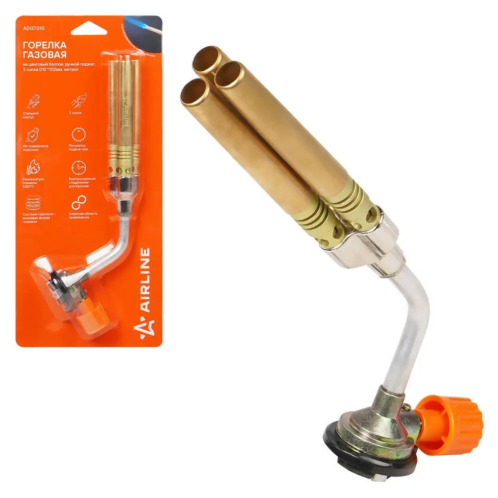 ADGT010 AIRLINE Горелка газовая на цанговый баллон, ручн.поджиг, 3 сопла D12 *102мм, металл (ADG