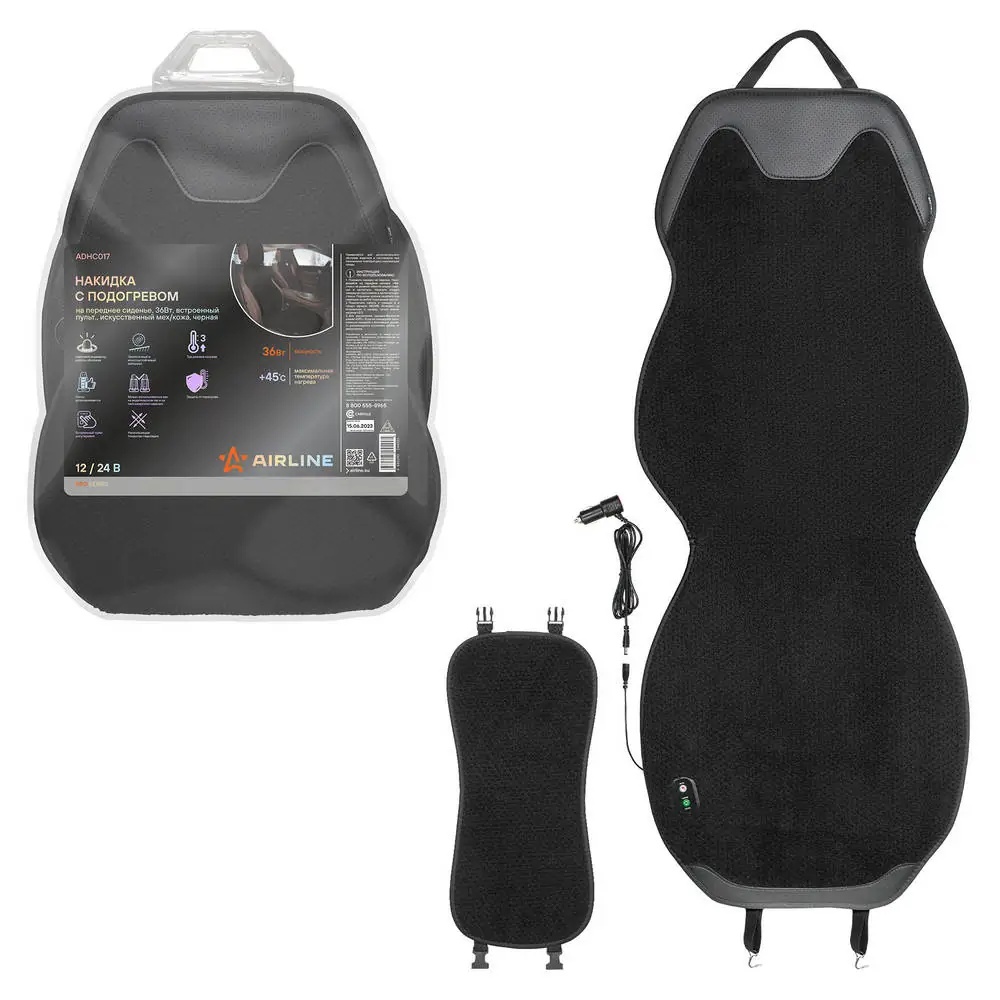 ADHC017 AIRLINE Накидка с подогревом на перед.сид. PRO, 12/24В, 36Вт,встр.пульт., искусст.мех/ко