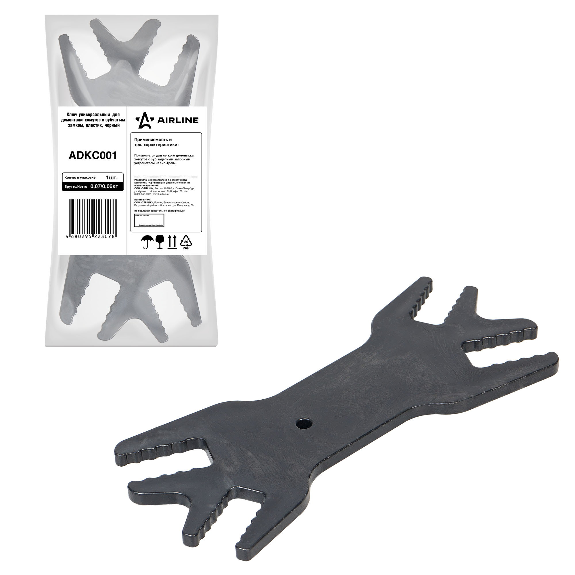 ADKC001 AIRLINE Ключ универсальный для демонтажа хомутов с зубчатым замком, пластик, черный AIRL