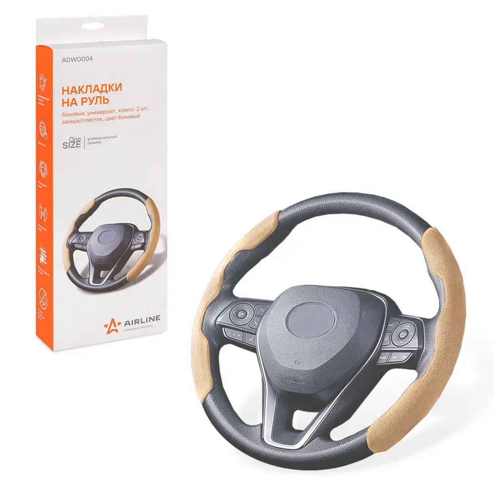 ADWO004 AIRLINE Накладка на руль боковая замша-пластик бежевая 2шт. AIRLINE