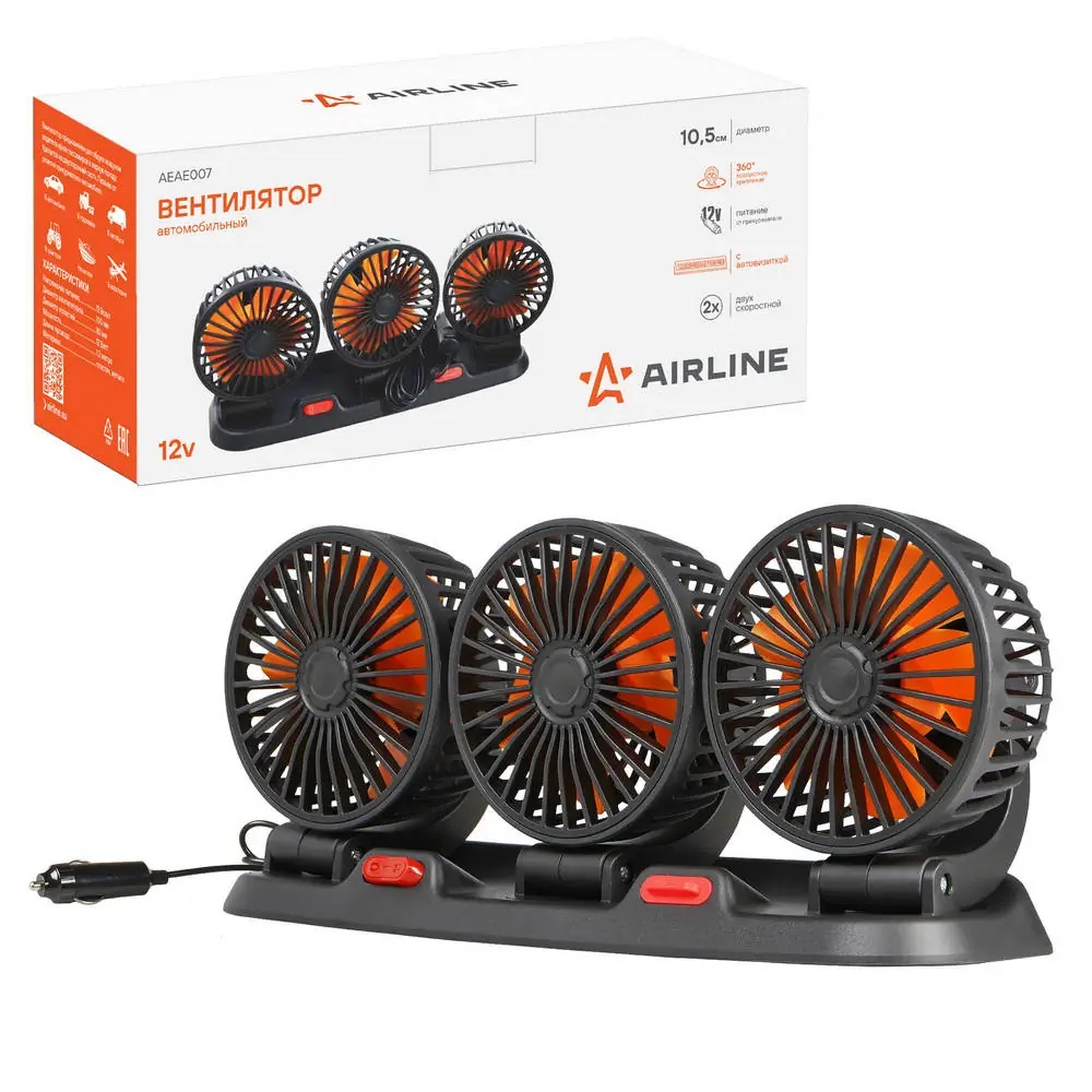 AEAE007 AIRLINE Вентилятор салона "AIRLINE" (12V) (тройной поворотный 360, 3x10.5см, 12В, общая