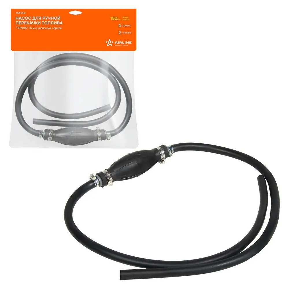 AEAT202 AIRLINE Насос для ручной перекачки топлива "Груша" 1.5м с клапаном, черная "AIRLINE"