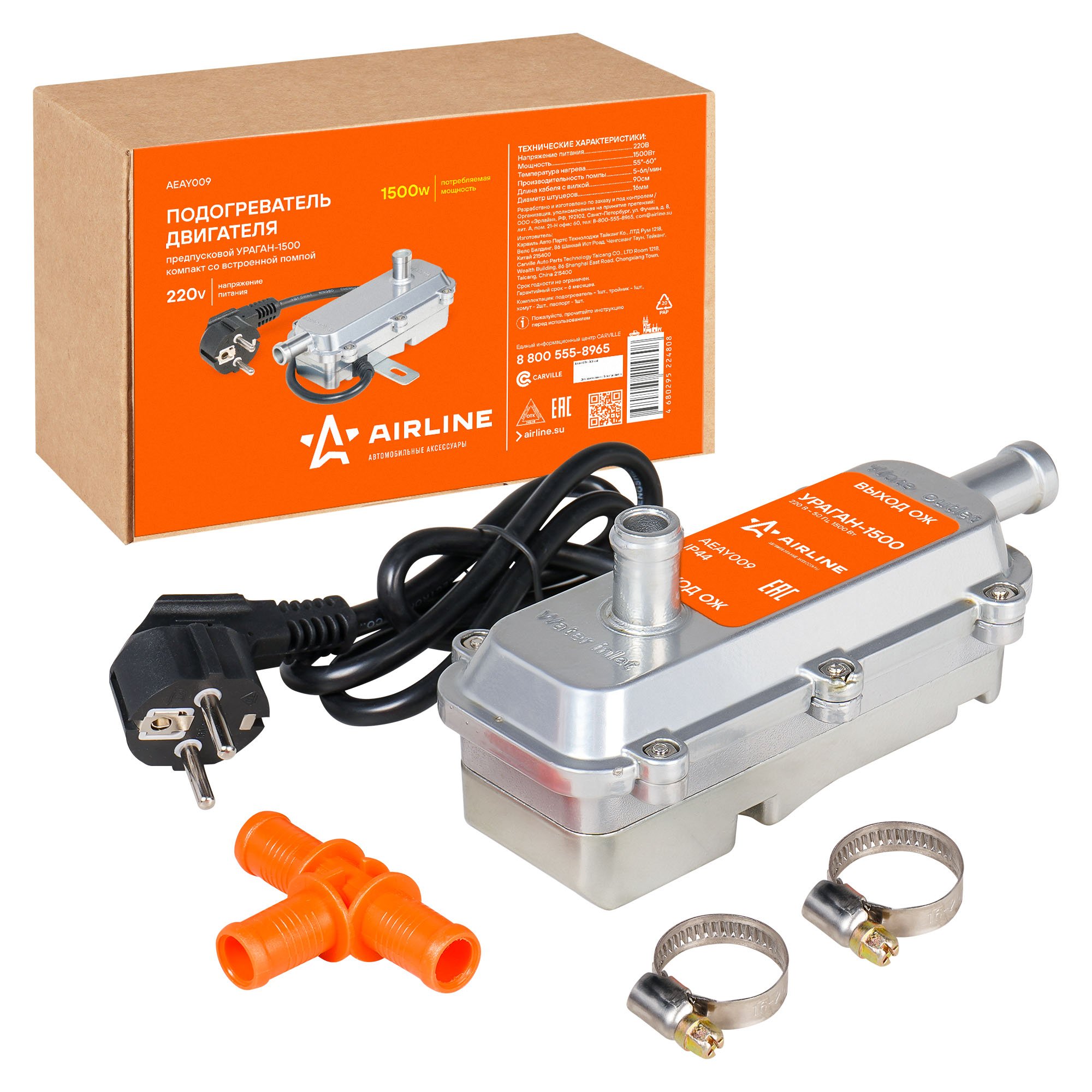 AEAY009 AIRLINE Подогрев тосола со встроенной помпой УРАГАН-1500 компакт (1,5 кВт, 220В, 5-6л/ми