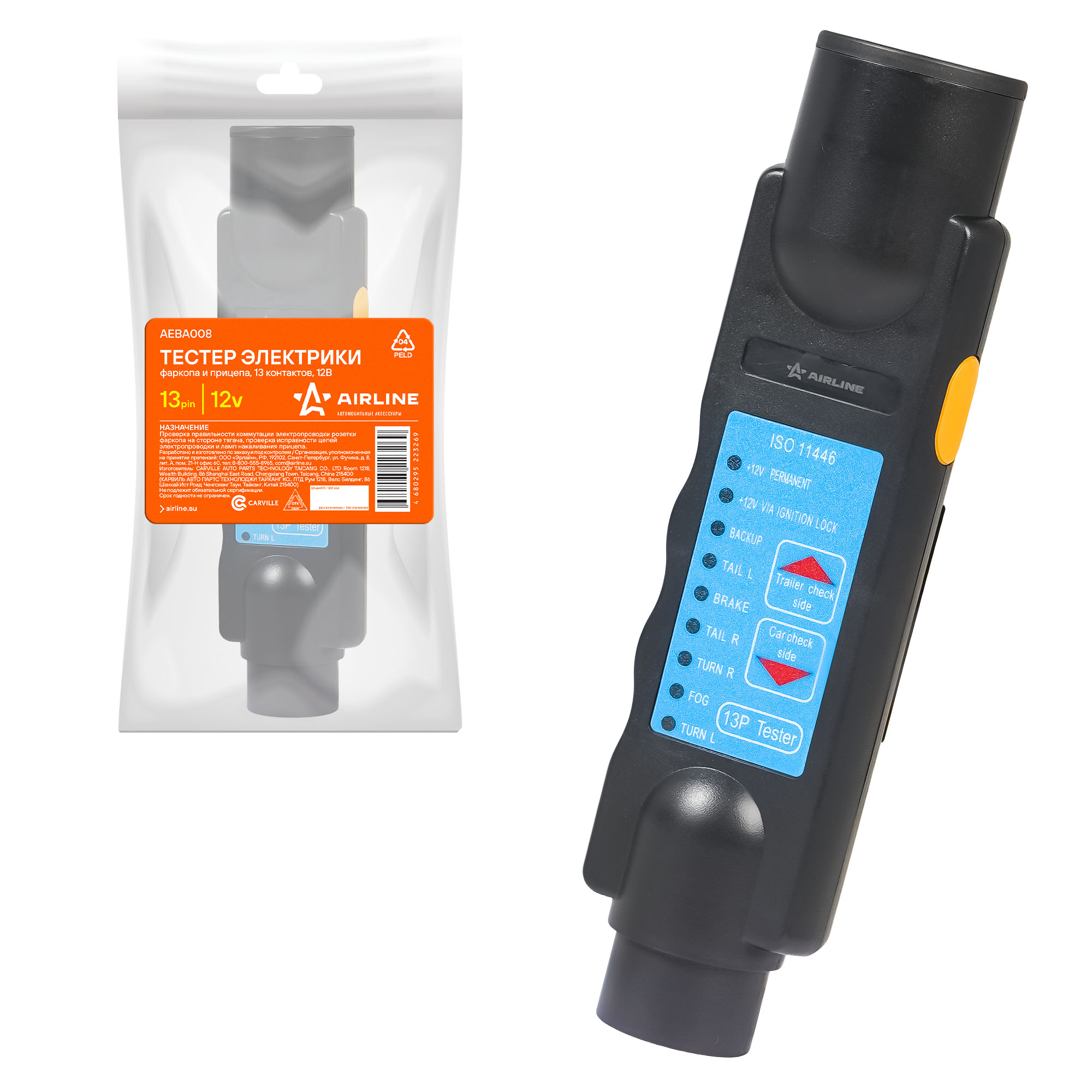 AEBA008 AIRLINE Тестер электрики фаркопа и прицепа 13 контактов 12В