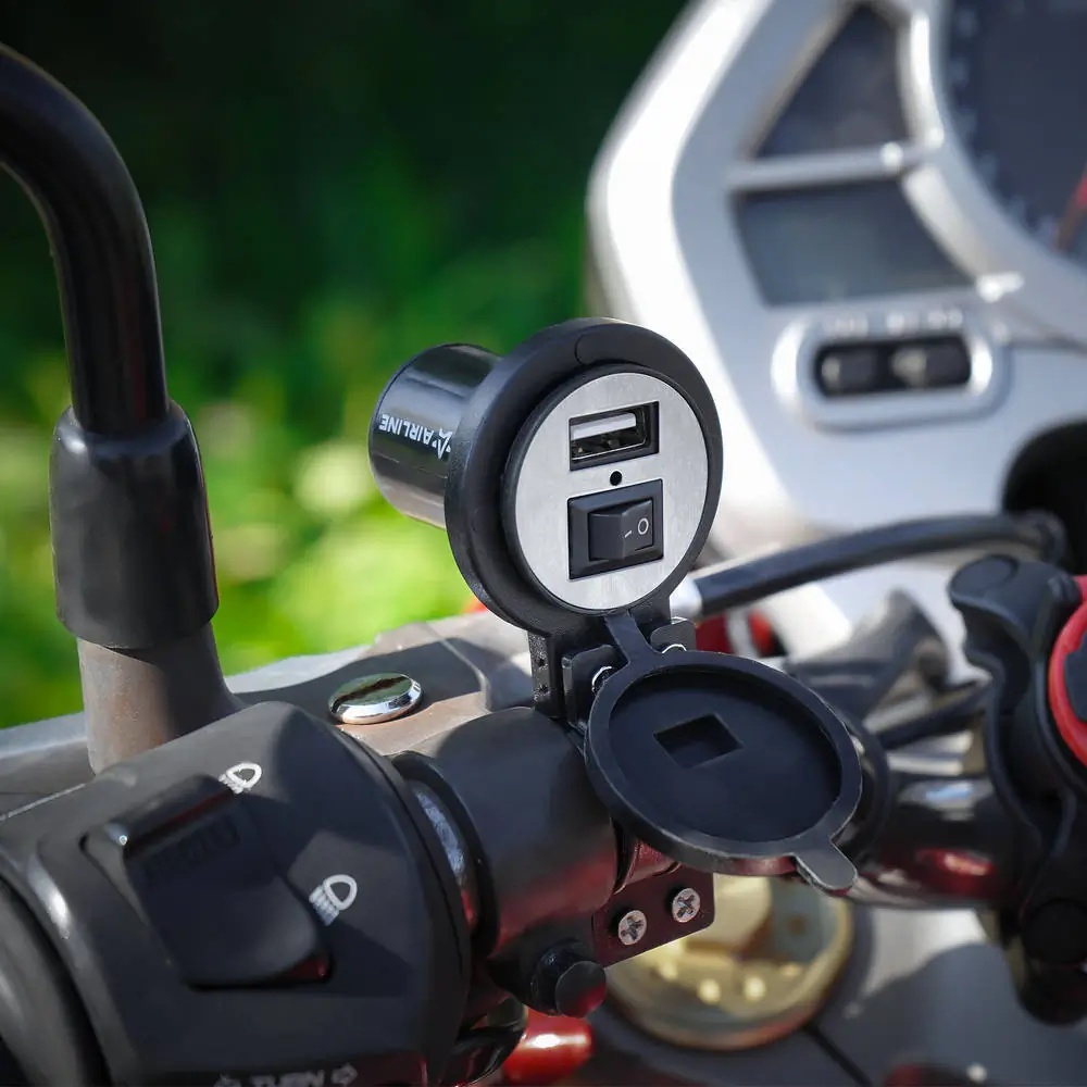 AEBJ206 AIRLINE розетка USB! для мотоциклов с 1 портом (5В, 2.1А) (вкл/выкл)\