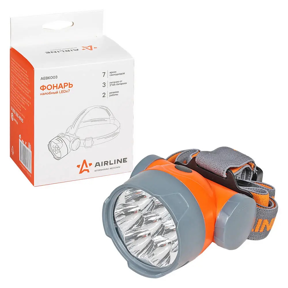 AEBK003 AIRLINE Фонарь налобный "AIRLINE" (LEDx7, на батарейках, большой)