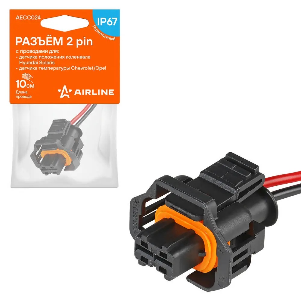 AECC024 AIRLINE Разъём 2 pin с проводами для датчика пол. коленвала Hyundai Solaris для датчика