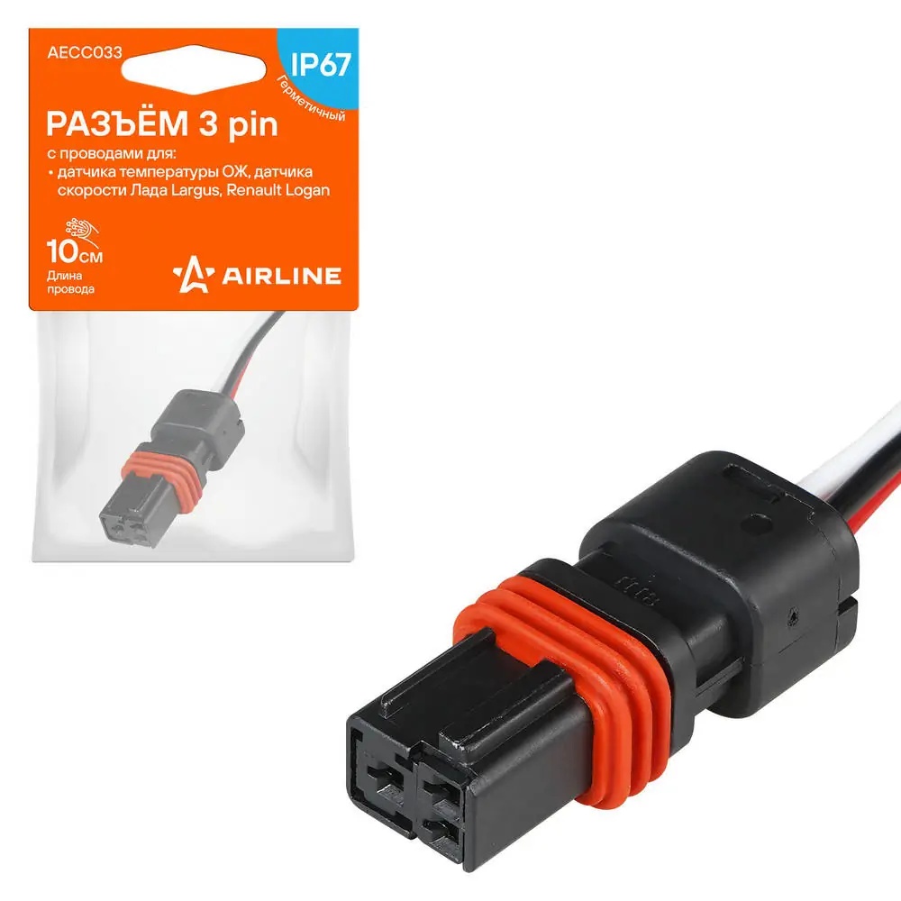AECC033 AIRLINE Разъём 3 pin с проводами для датчика температуры ОЖ, датчика скорости Лада, Rena