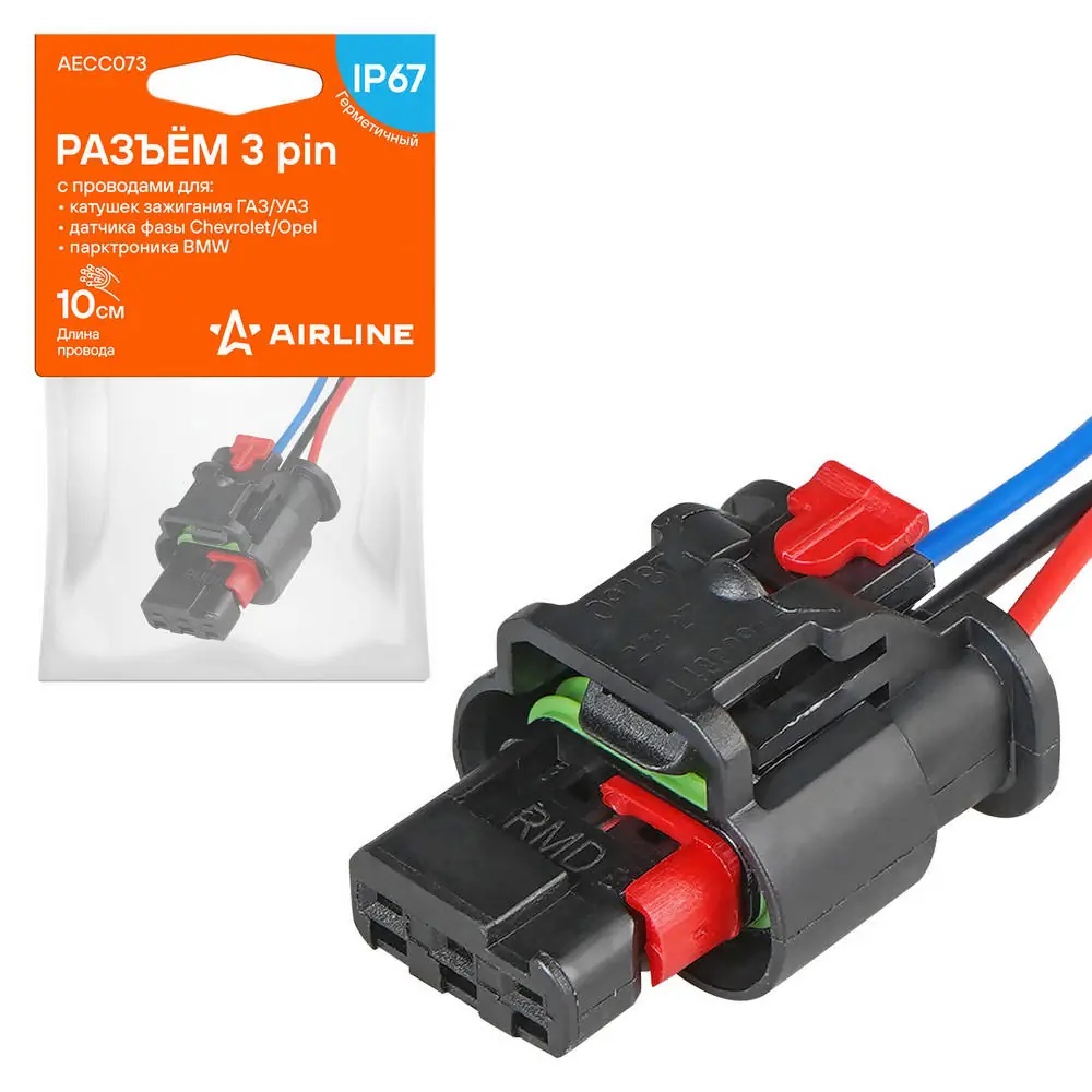 AECC073 AIRLINE Разъём 3 pin с проводами для катуш.зажиг. ГАЗ/УАЗ, для датчика фазы Chevrolet/Op