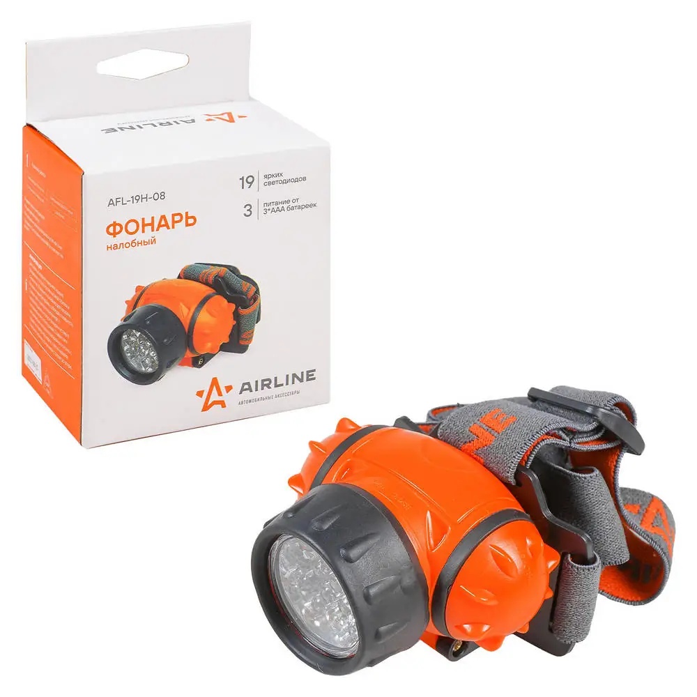 AFL-19H-08 AIRLINE Фонарь налобный на батарейках LEDx19 (AFL-19H-08)