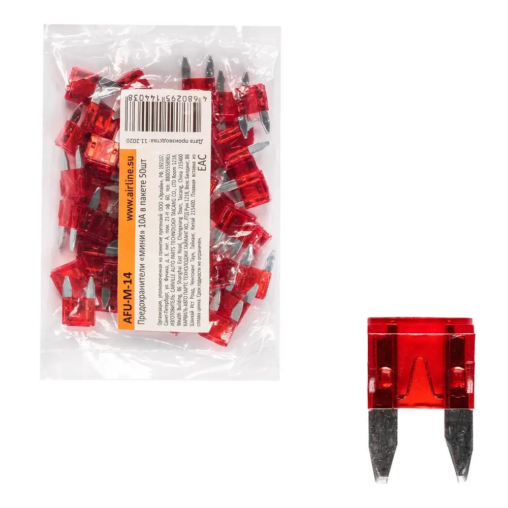 | Наименование | Предохранители мини 10A в пакете 50шт (AFU-M-14) |