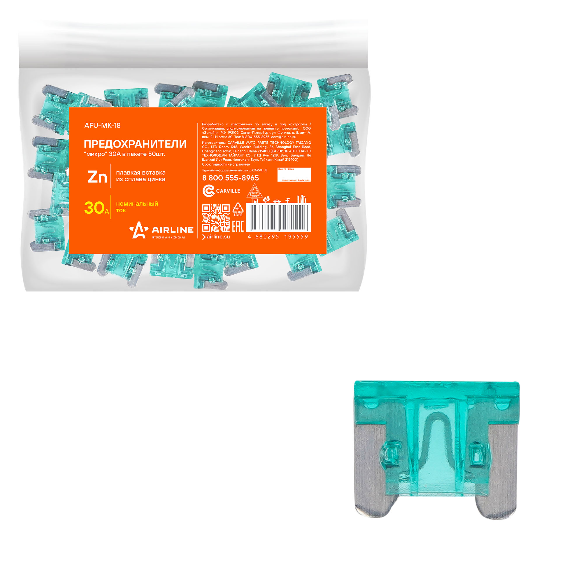 AFU-MK-18 AIRLINE Предохранители микро 30A в пакете 50шт (AFU-MK-18)