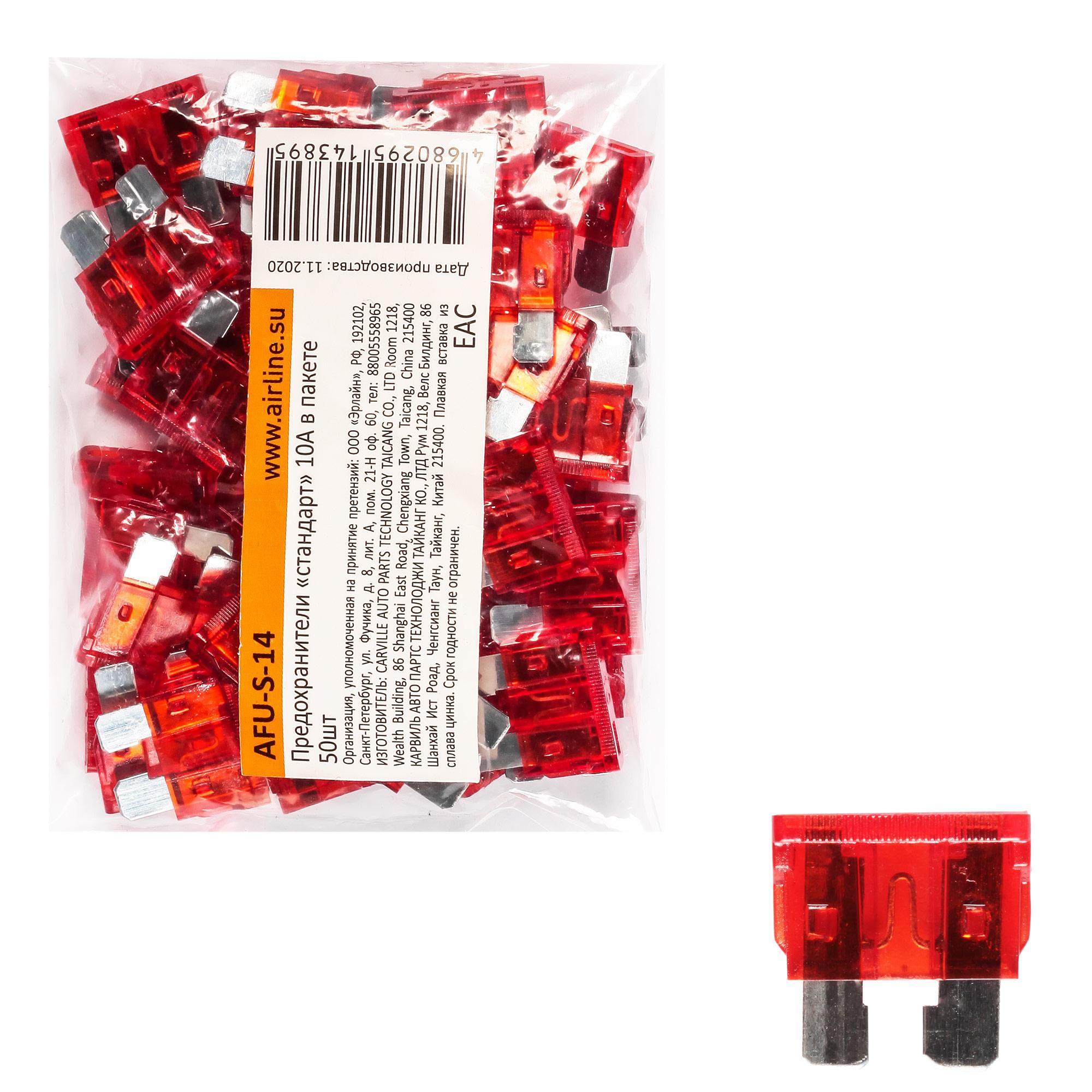 | Наименование | Предохранители флажковые Стандарт 10А для а/м ВАЗ 2110 н/о AIRLINE 50 шт. |