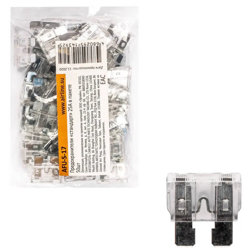 | Наименование | Предохранители флажковые Стандарт 25А для а/м ВАЗ 2110 н/о AIRLINE 50 шт. |