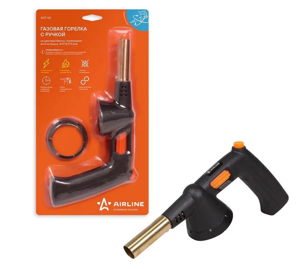AGT-04 AIRLINE Горелка газовая под цанговый баллон с пьезорозжигом(21,5х12,5х5,5см)/AIRLINE/