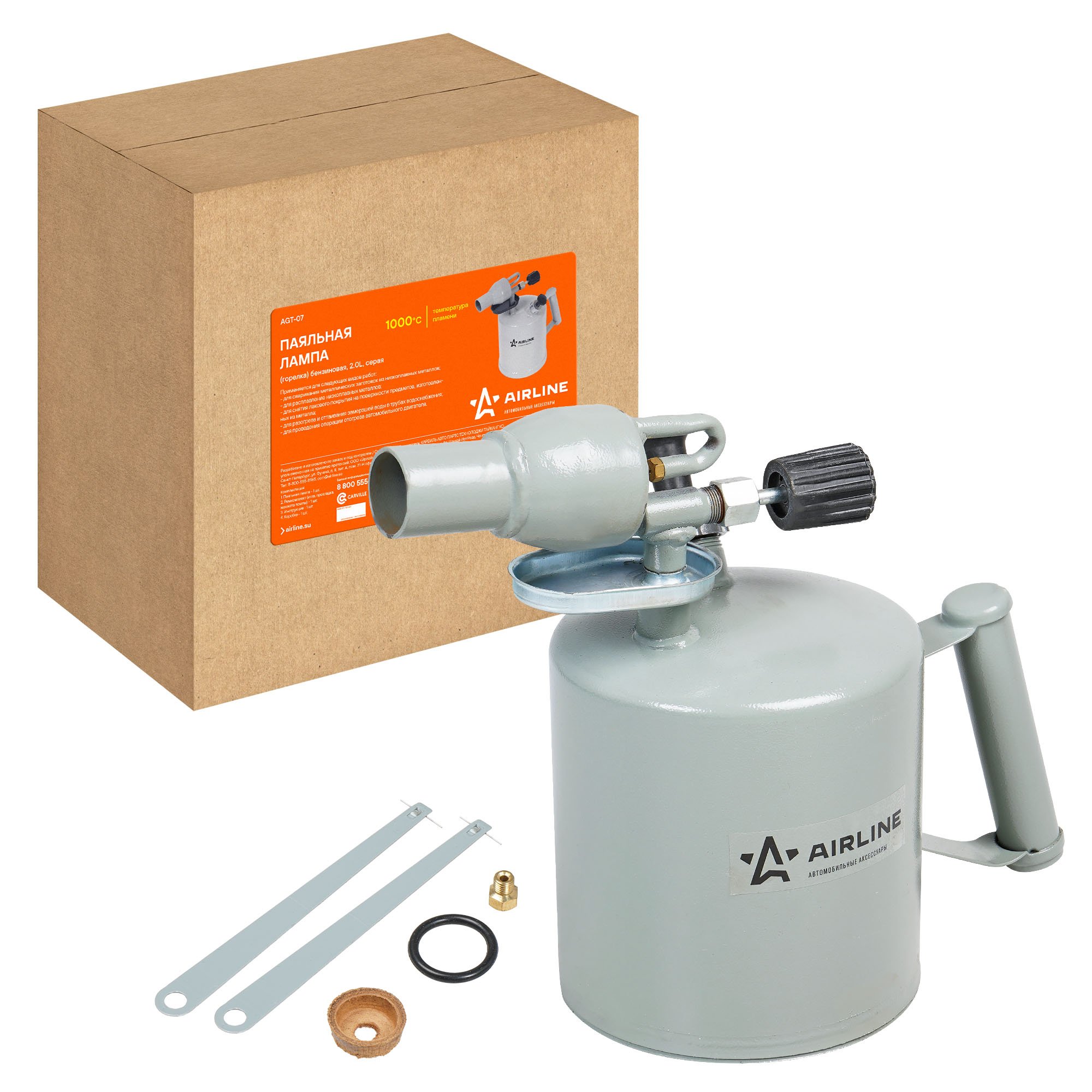 AGT-07 AIRLINE Лампа паяльная (горелка) бензиновая, 2,0L, серая(AGT-07)