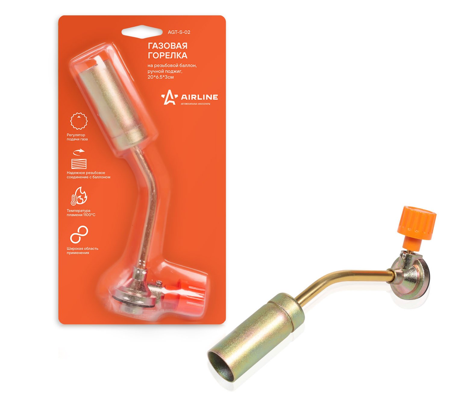 AGT-S-02 AIRLINE Горелка газовая под резьбовой баллон без пьезоподжига в блистере AIRLINE