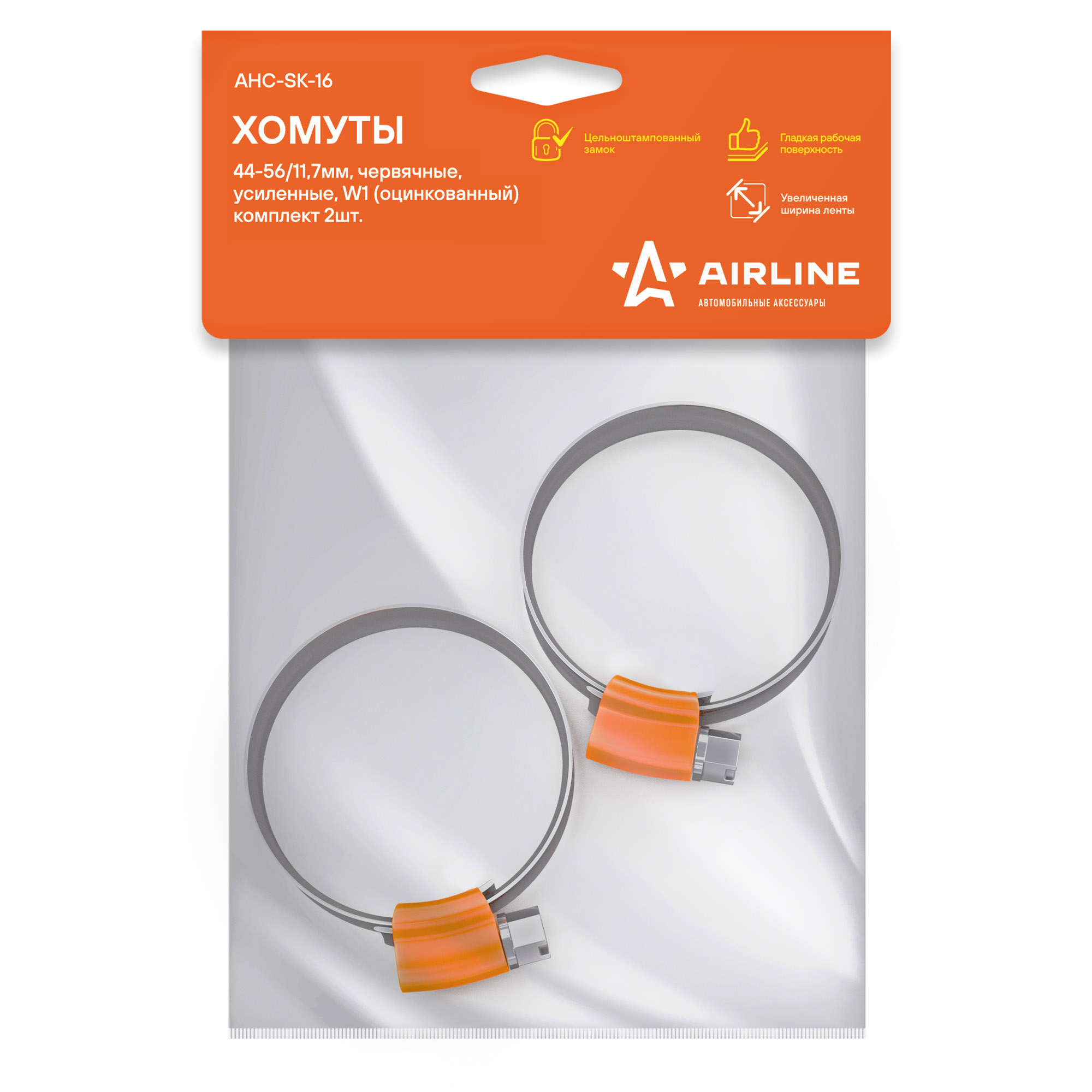 AHC-SK-16 AIRLINE Хомуты 44-56/11,7 мм, W1 (оцинкованный), в компл. 2 шт. AHC-SK-16
