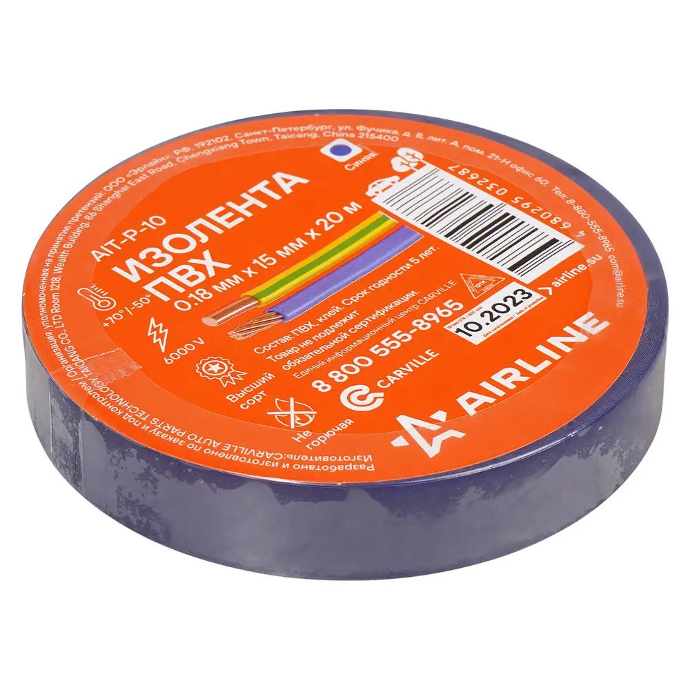 | Наименование | Изолента ПВХ синяя 15ммx20м AIRLINE |