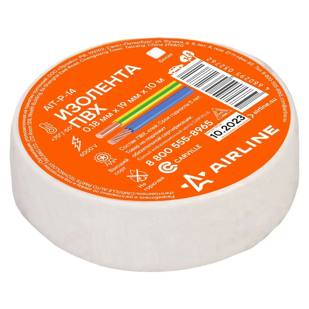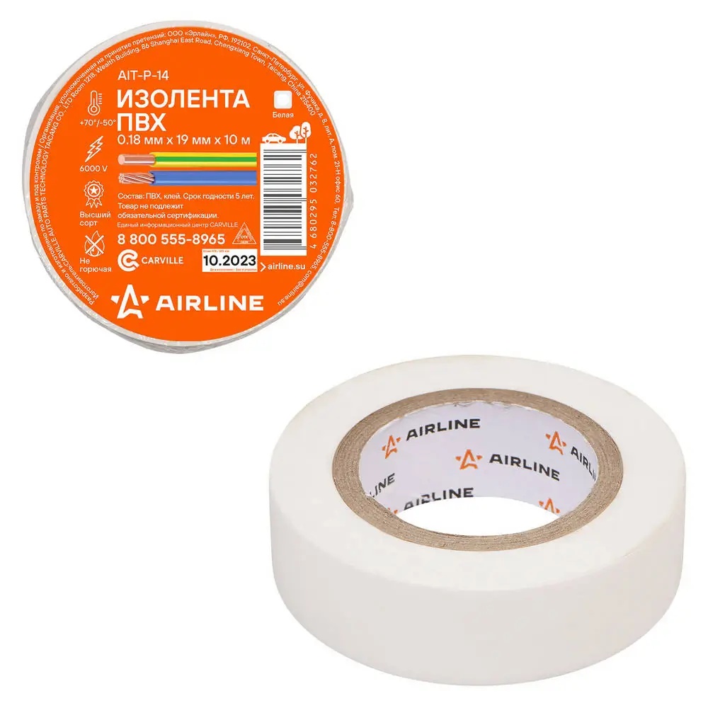AIT-P-14 AIRLINE Изолента ПВХ белая 19ммx10м AIRLINE