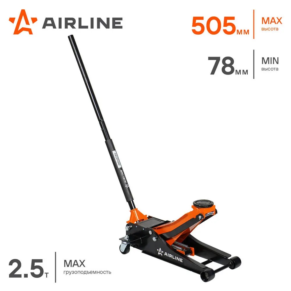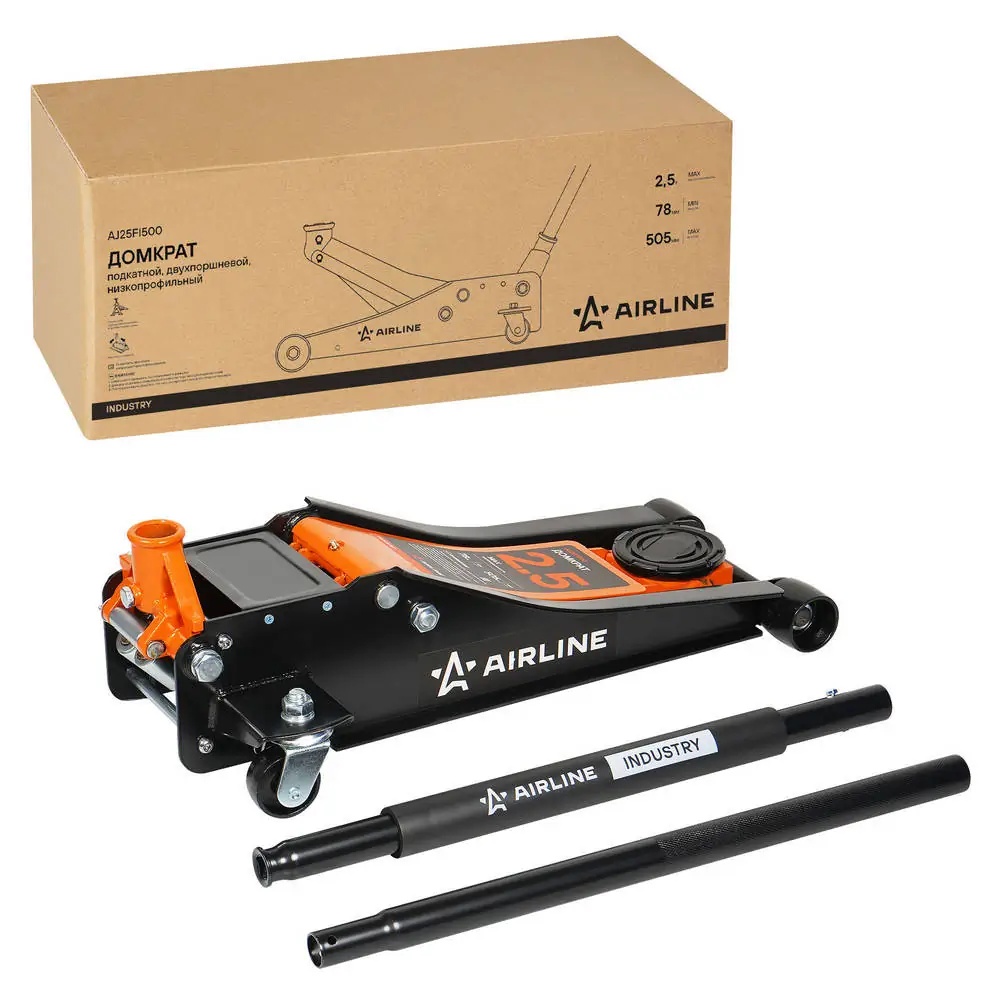AJ25FI500 AIRLINE Домкрат подкатной 2.5т INDUSTRY двухпоршневой низкопрофильный (MIN - 78мм, MAX -