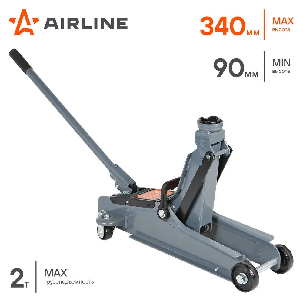 | Наименование | Домкрат подкатной 2 т AIRLINE 90 - 340 мм в кейсе |
