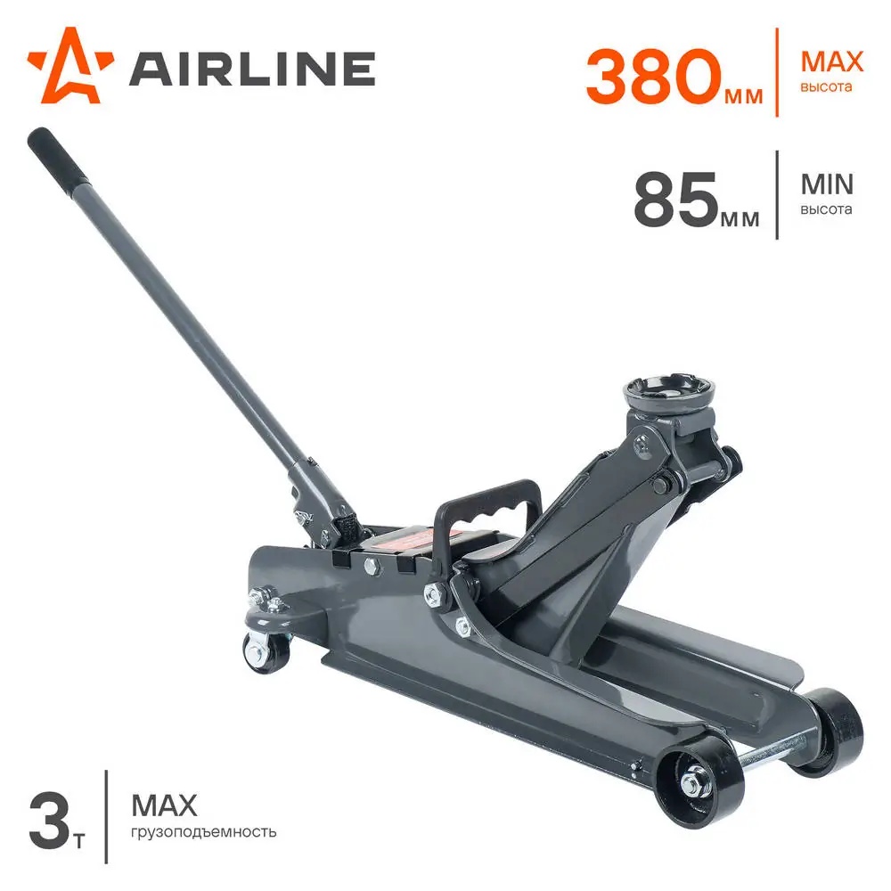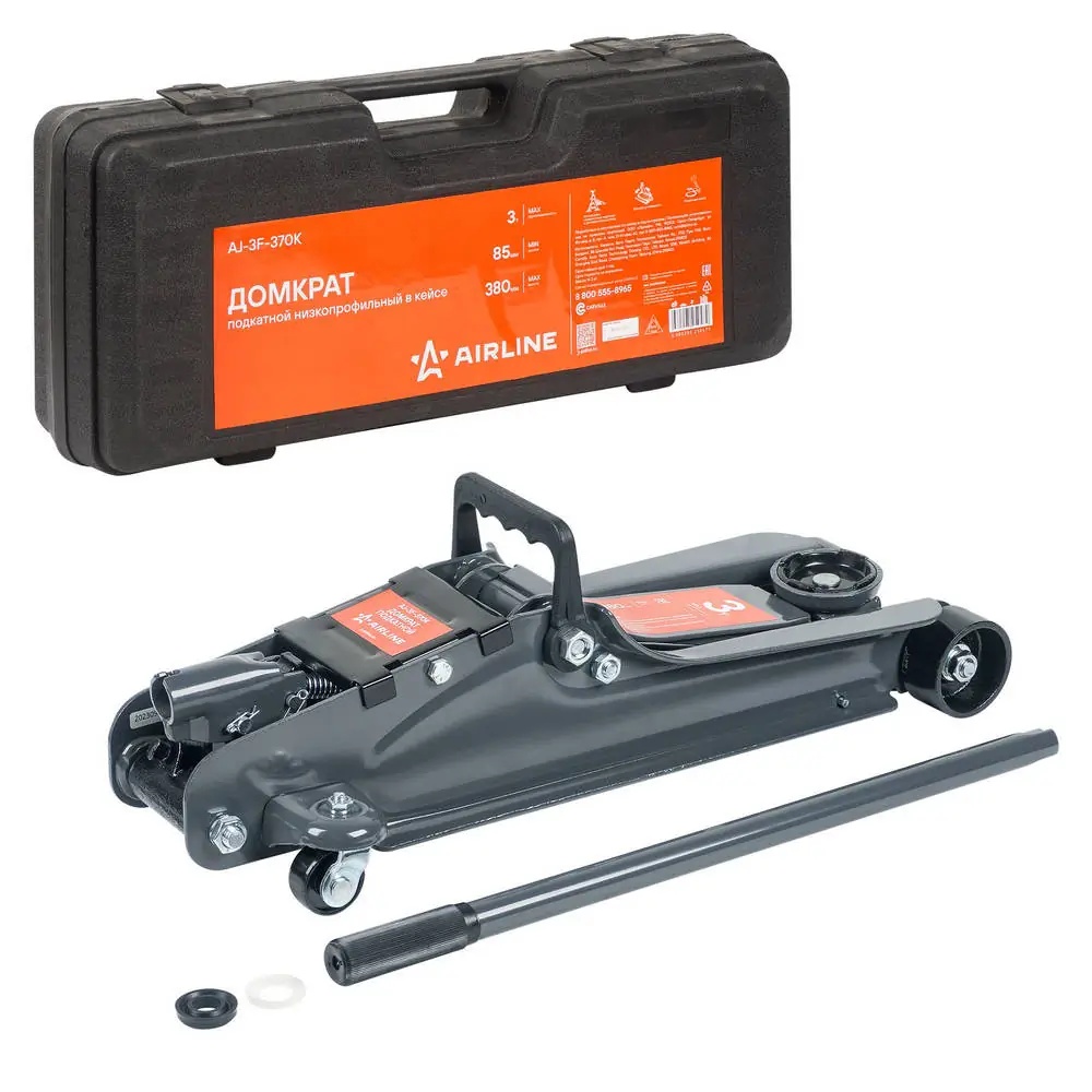 AJ3F370K AIRLINE Домкрат подкатной 3т низкопрофильный в кейсе (MIN - 85мм, MAX - 380мм) (AJ-3F-37