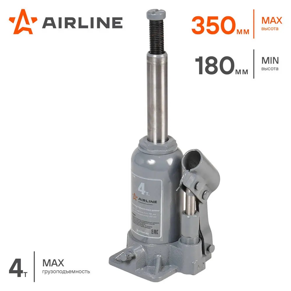 AJ-B-04S AIRLINE Домкрат бутылочный Standard 4т (MIN - 180мм/MAX - 350мм) AJ-B-04S