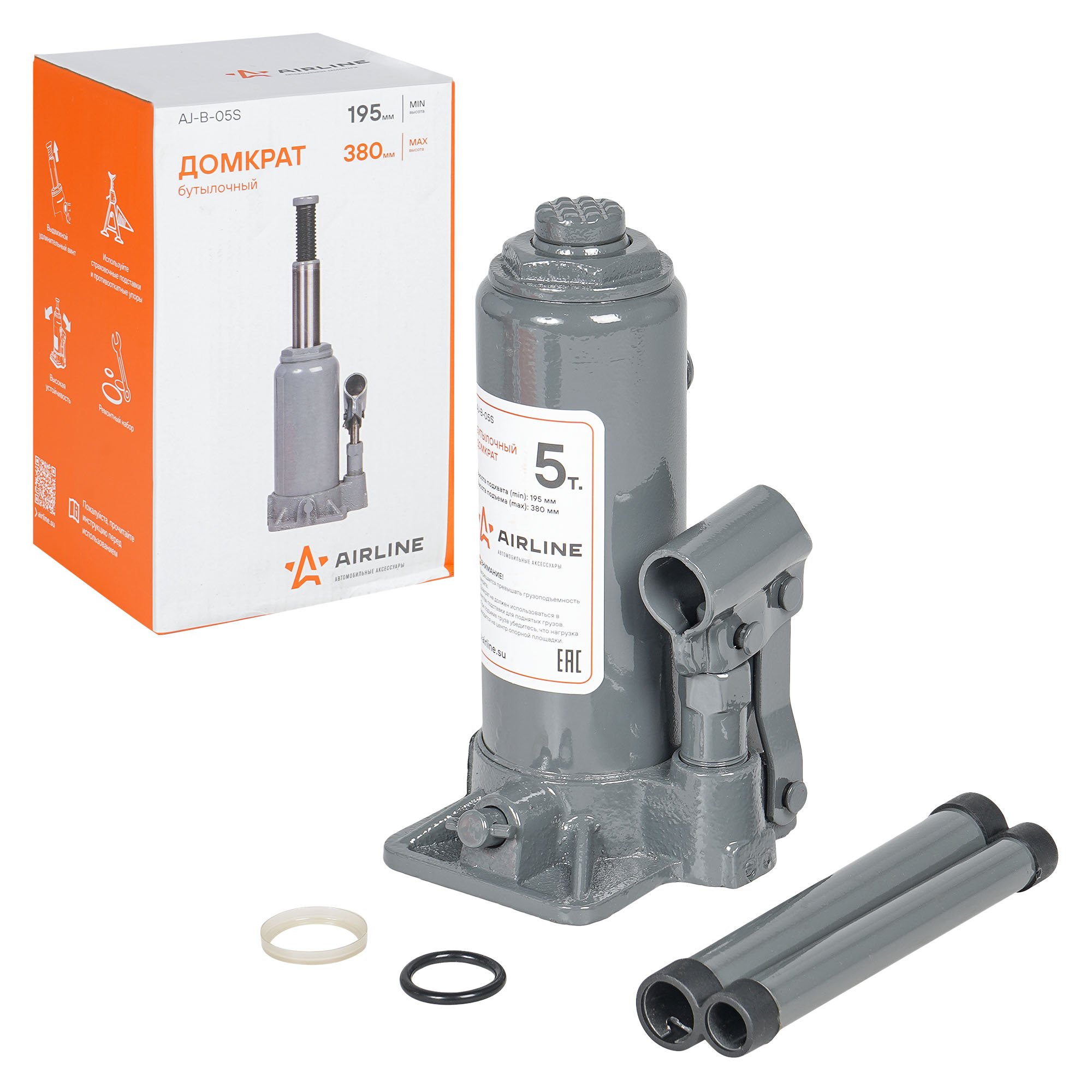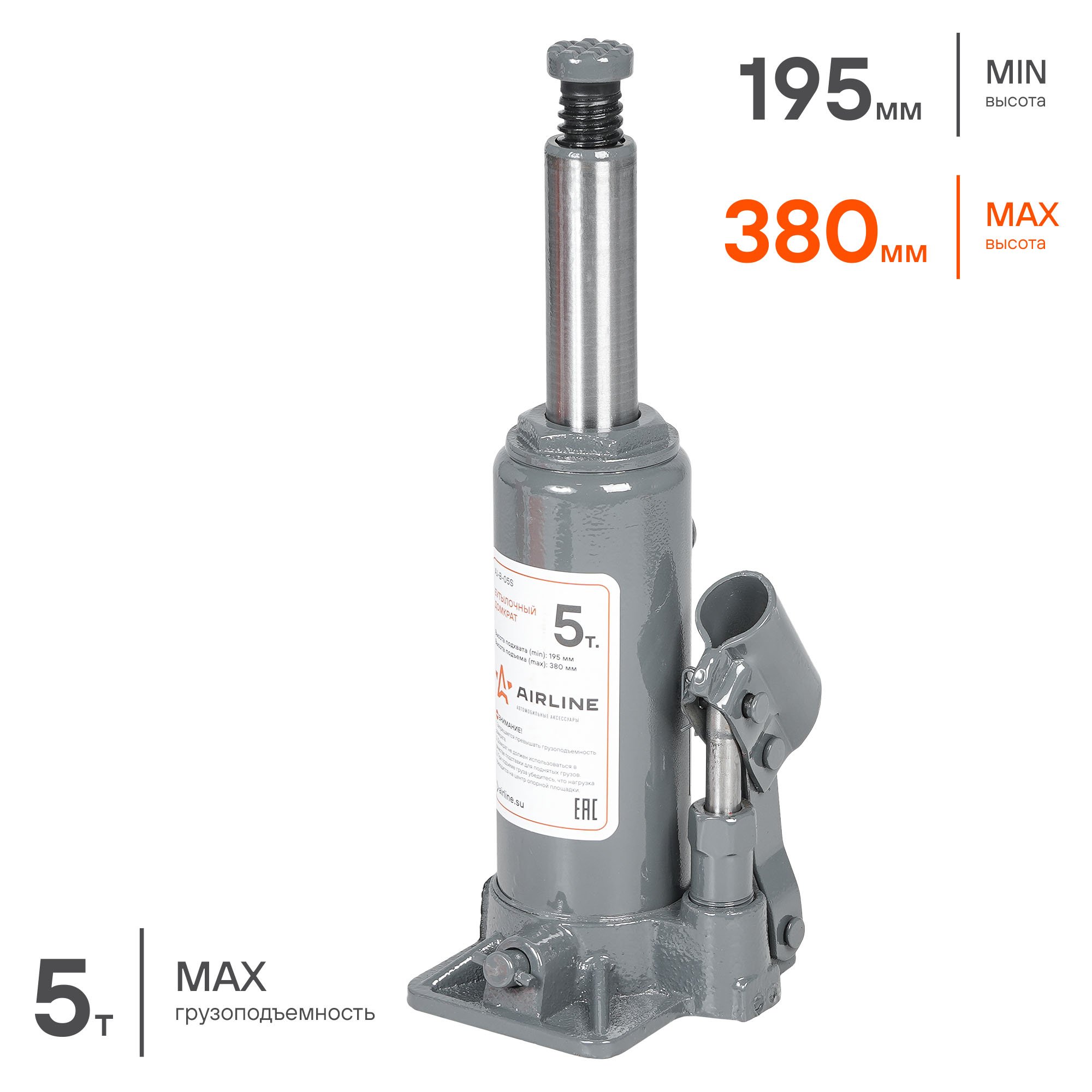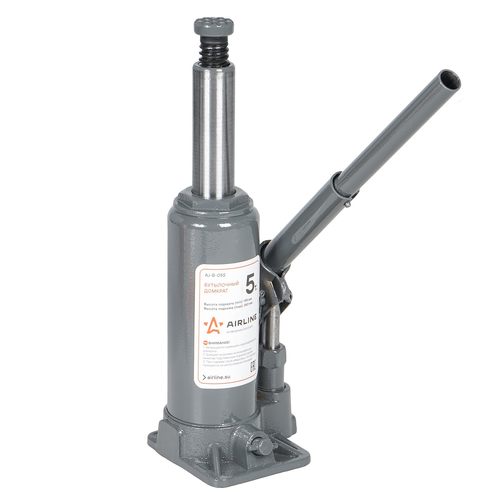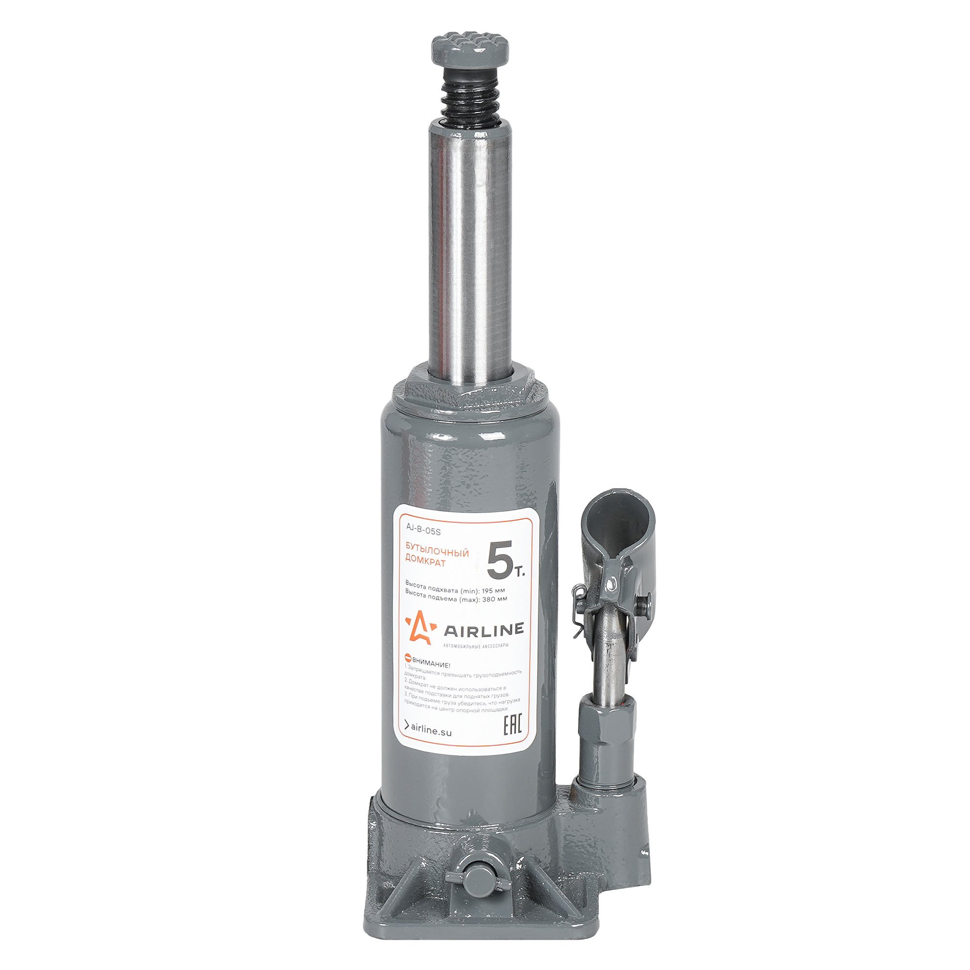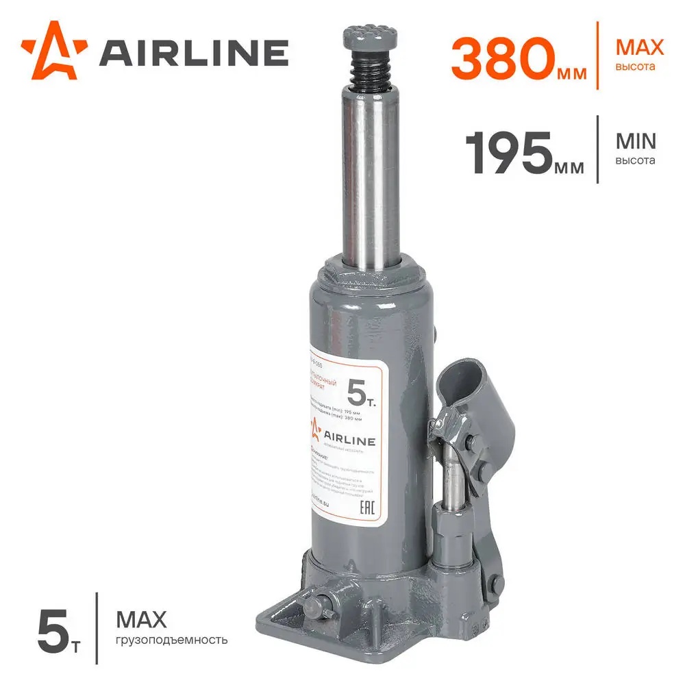 AJB05S AIRLINE Домкрат бутылочный 5т S (MIN - 195 мм, MAX - 380 мм) (AJ-B-05S)