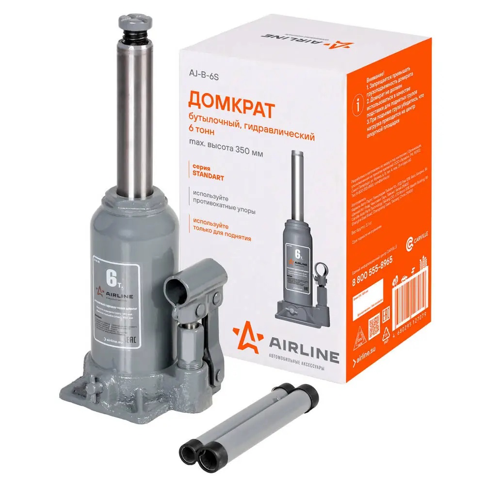 AJ-B-06S AIRLINE Домкрат бутылочный 6т S (MIN - 175 мм, MAX - 350 мм) (AJ-B-06S)