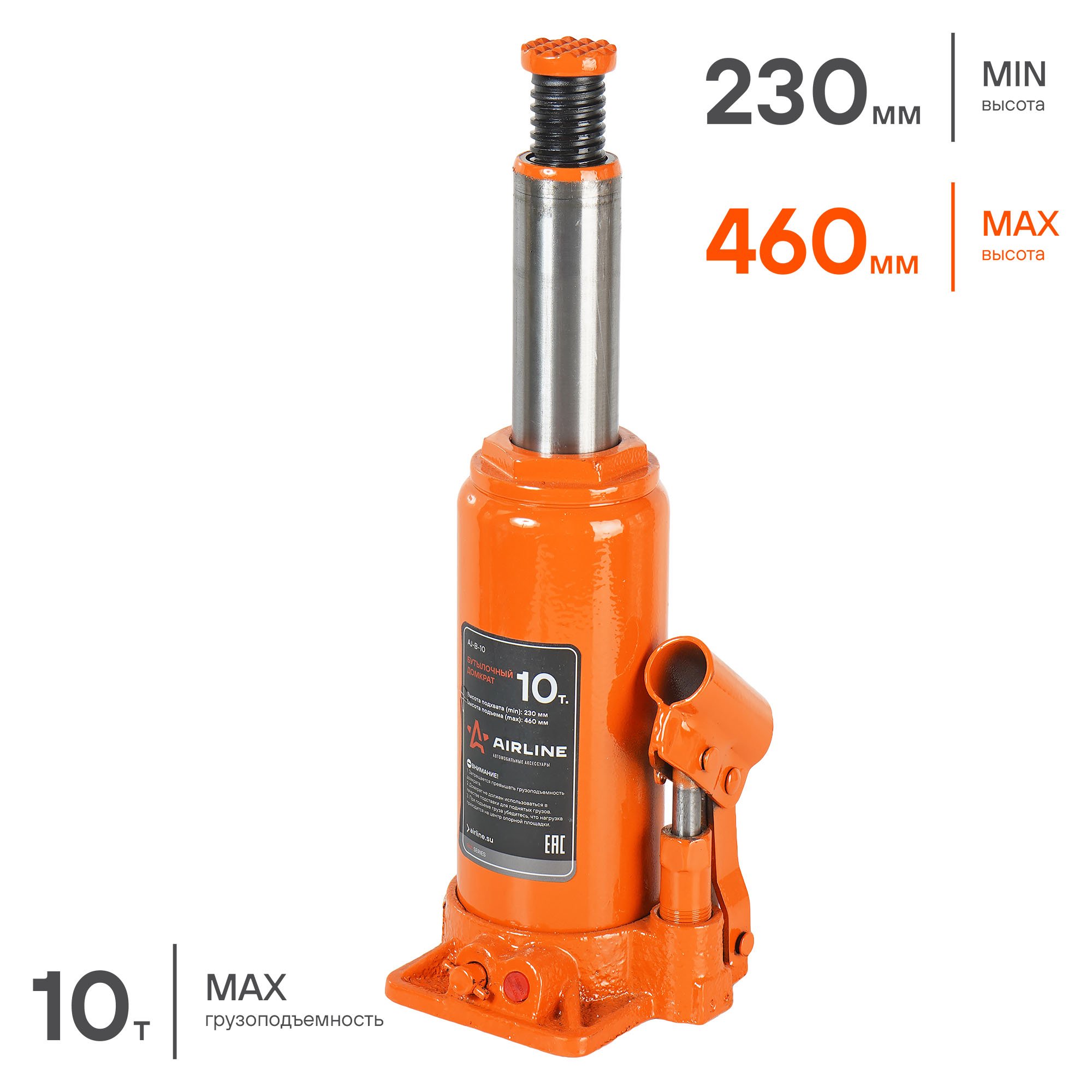 AJ-B-10 AIRLINE Домкрат бутылочный 10 т AIRLINE 230 - 460 мм