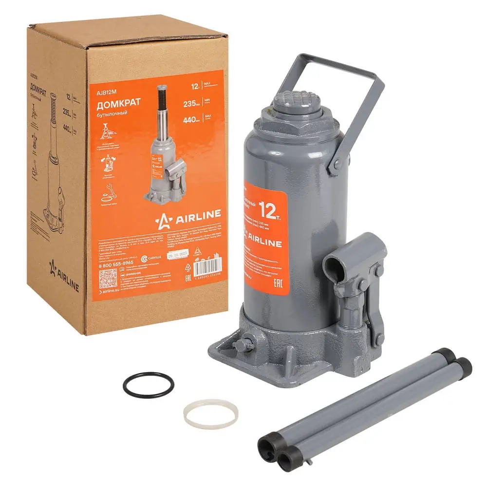 AJB12M AIRLINE Домкрат бутылочный 12т (MIN - 235мм, MAX - 440мм) (AJB12M)