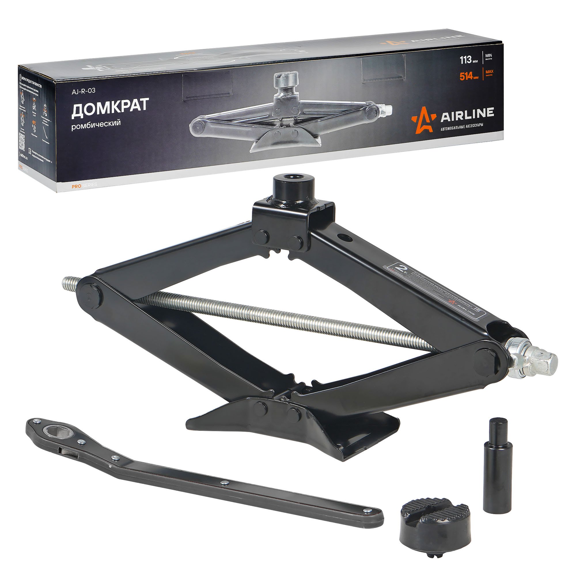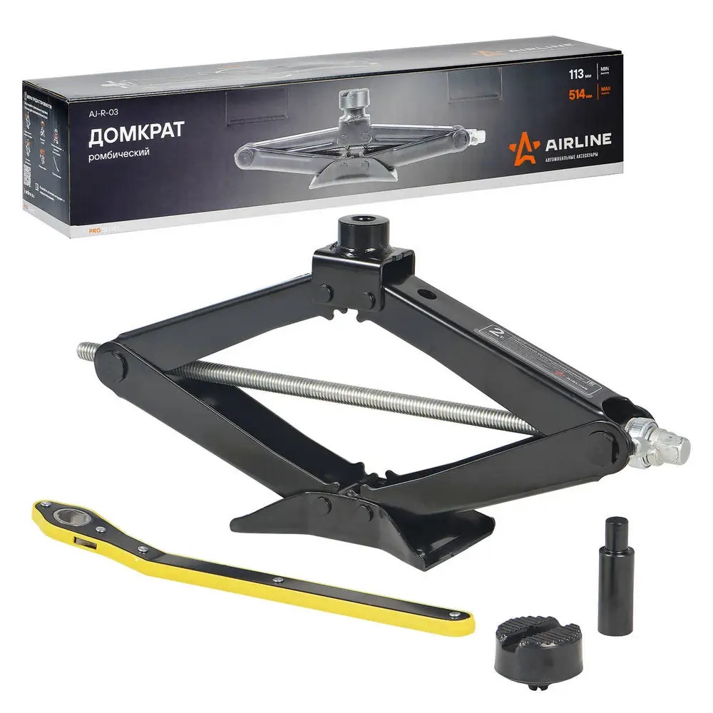 AJ-R-03 AIRLINE Домкрат ромбический 2т PRO (MIN - 113 мм, MAX - 514 мм) (AJ-R-03)
