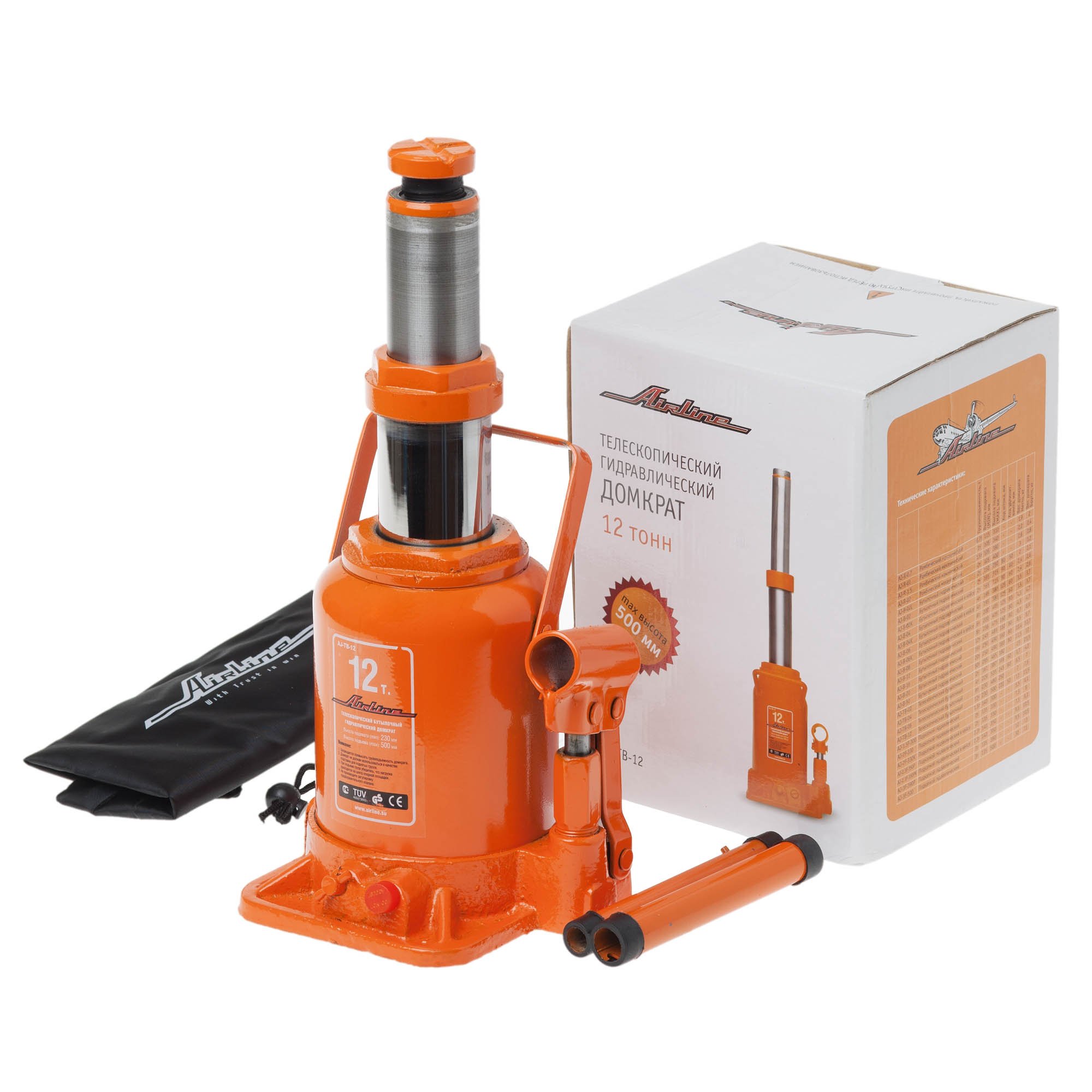 AJ-TB-12 AIRLINE Домкрат телескопич. 12т в сумке (MIN - 230мм, MAX - 500мм) (AJ-TB-12)